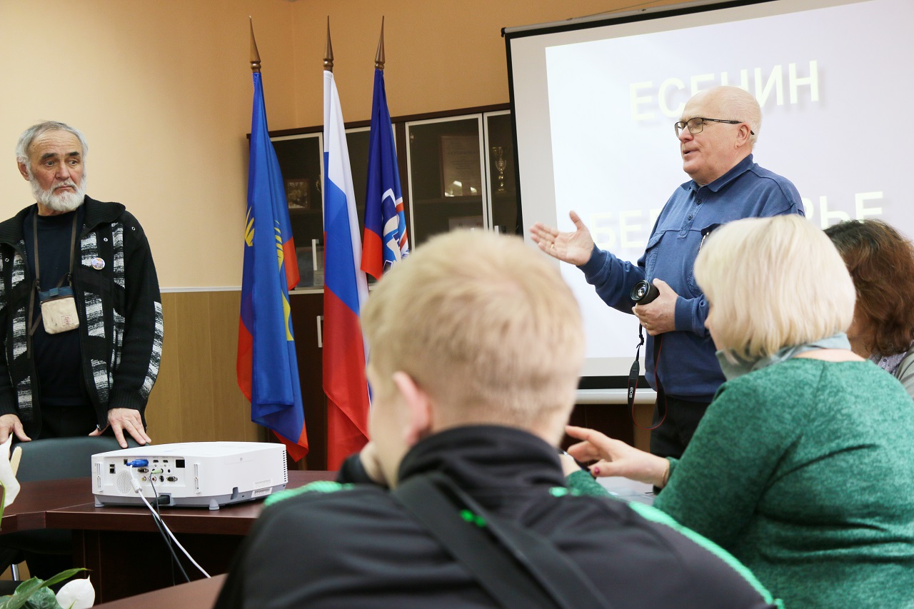 В нашем городе встреча с участниками выездной экспедиции «Поэтический венок Беломорью» прошла традиционно в Кандалакшском индустриальном колледже. 19 апреля в конференц-зале колледжа собрались студенты, преподаватели, представители городского Совета ветеранов и прессы. На встрече выступали библиотекари областной детской библиотеки с презентацией «Есенин и Беломорье», мурманский писатель и журналист Дмитрий Коржов, автор трилогии «Мурманцы», поэты из Североморска - член Союза писателей России Валерий Чарторийский и журналист, зам. редактора газеты «На страже Родины» Вячеслав Черкасов - с новой книгой «Марафон в прошлое».