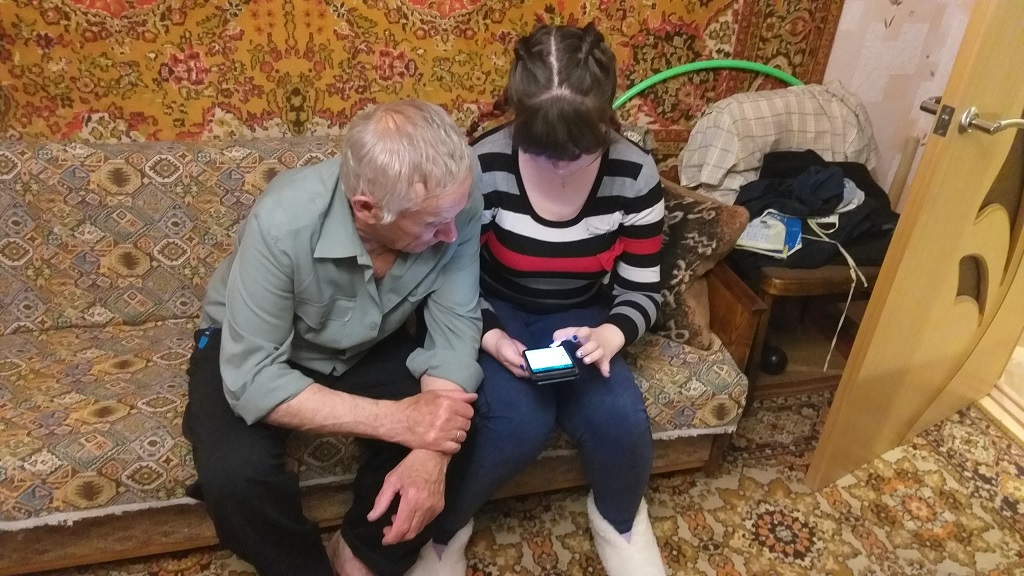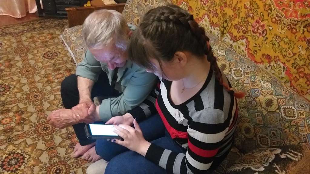 «Со смартфоном и компьютером по жизни» так назвали студенты проведенную акцию в канун Дня пожилого человека. Цель акции предоставить возможность пожилым людям общаться посредством сети Интернет со своими близкими, живущими в других городах, пользоваться интересующей их информацией, развивать творческие способности. Все это в комплексе способствует улучшению качества жизни людей старшего поколения. В мае месяце во время проведения акции «Поздравь ветерана» студенты познакомились с Литвиненко Борисом Прокофьевичем бывшим несовершеннолетним узником фашистских концлагерей и его супругой Зинаидой Ивановной, которые высказали пожелание сформировать знания и умения в сфере компьютерной грамотности. На протяжении недели студенты группы 420 Алиса Тихомирова и Елена Матиясова проводили занятия с пожилыми людьми по обучению навыкам работы на компьютере и пользованию смартфоном. В течение проведенных занятий супруги Литвиненко изучили возможности смартфона, установили мобильные приложения, научились отправлять фотографии своим детям.