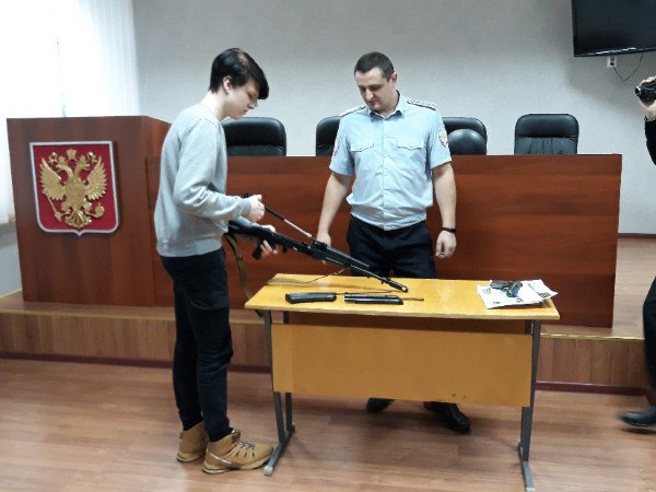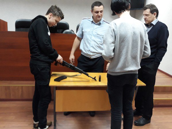 Эстафету акции принял сотрудник группы по работе с личным составом старший лейтенант внутренней службы Никита Ветлов. Он рассказал ребятам об условиях приема на службу в органы внутренних дел и требованиях, предъявляемых к кандидатам, а также социальных гарантиях, которыми обеспечиваются сотрудники. Самым интересным, вызвавшим восторг у ребят, был показ вооружения и спецсредств, которые помогают полицейским в работе. Молодым людям представилась возможность не только увидеть оружие, но и потренироваться в разборке и сборке автомата и пистолета, а также примерить экипировку полицейского.