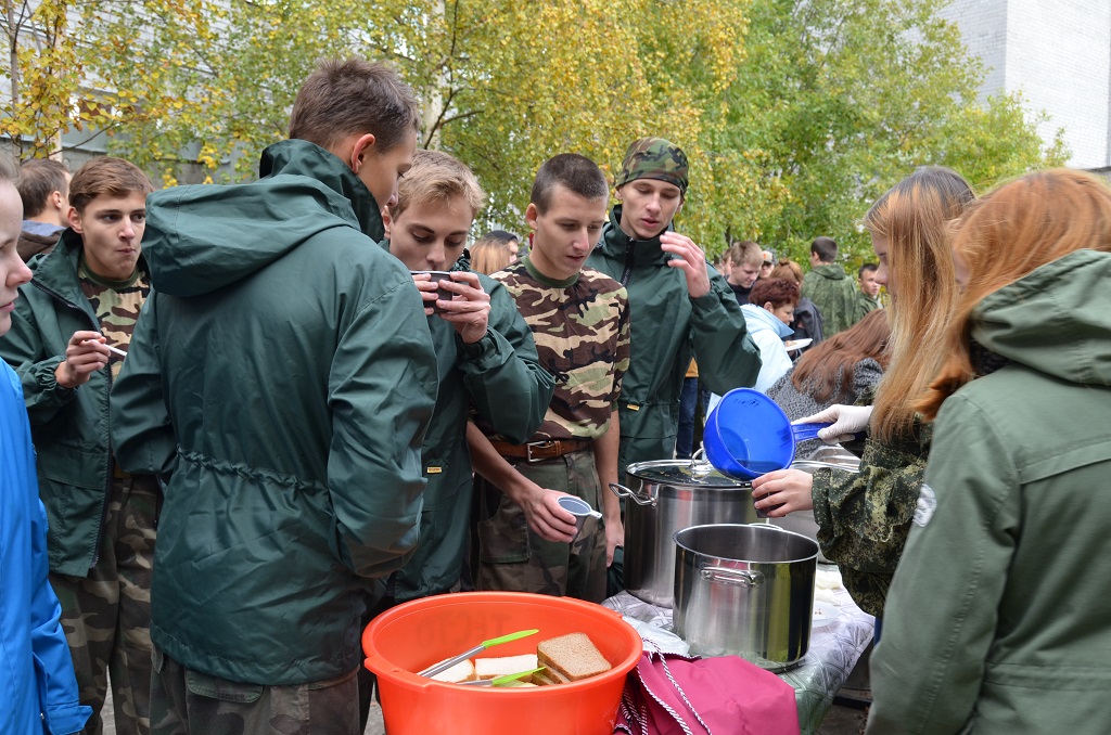 После окончания 4 тура, пока жюри подводило итоги, всех участников и гостей Игры пригласили подкрепиться полевой кашей. После чего состоялся сбор команд на плацу для оглашения итогов Игры.