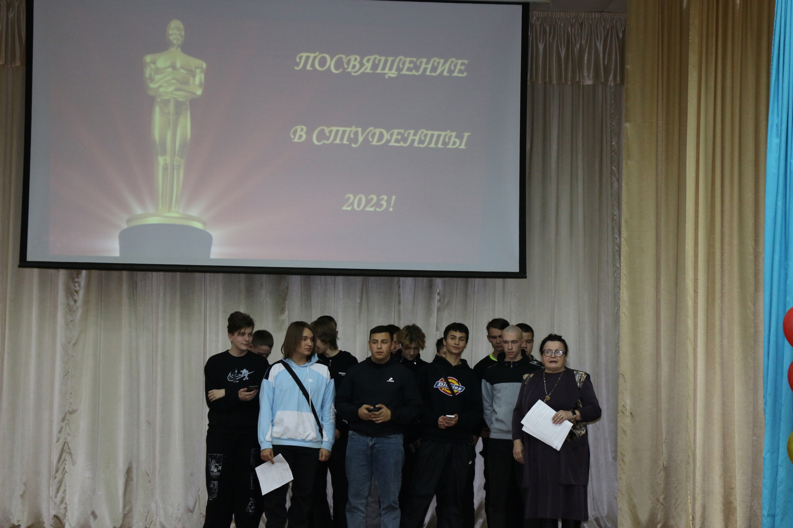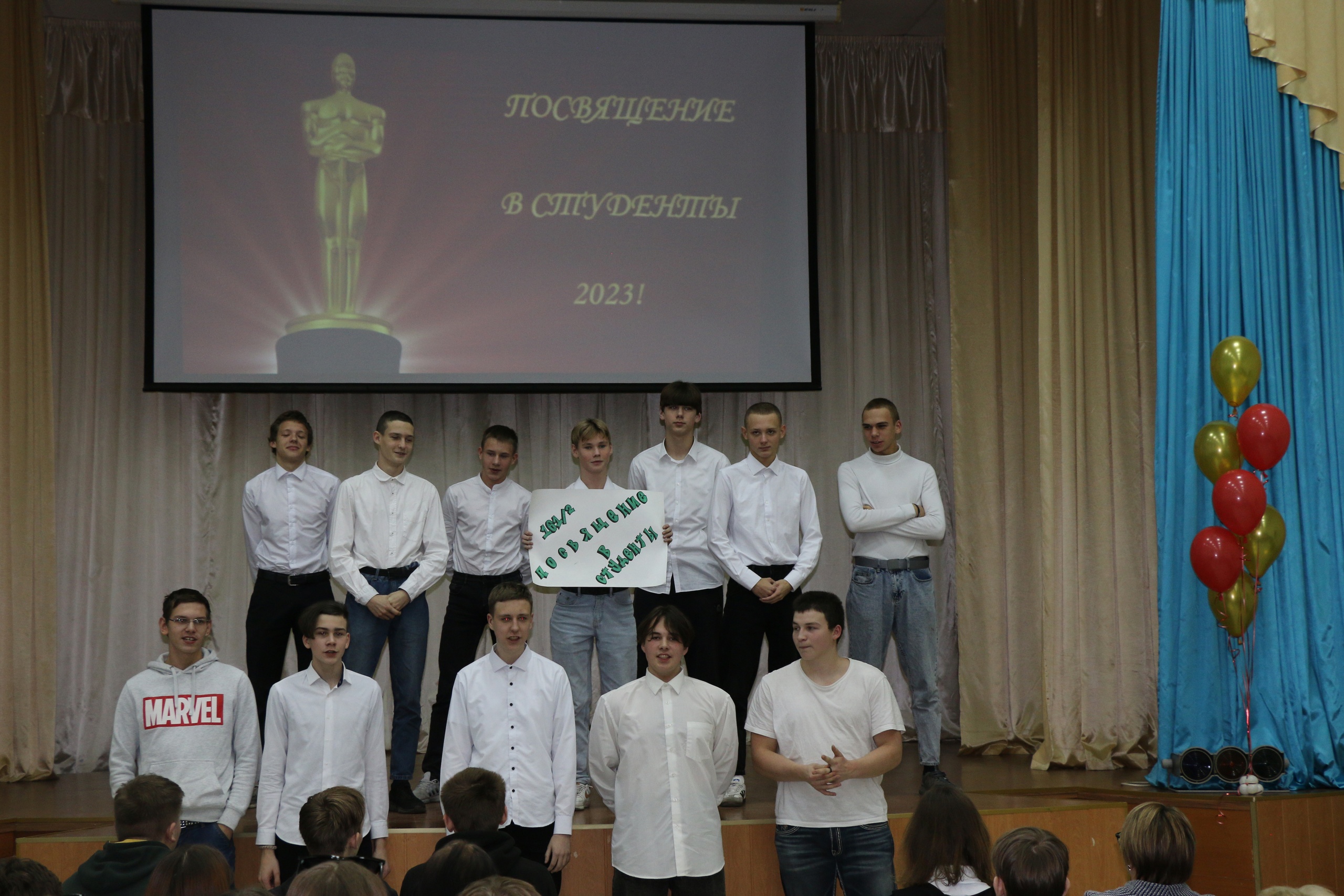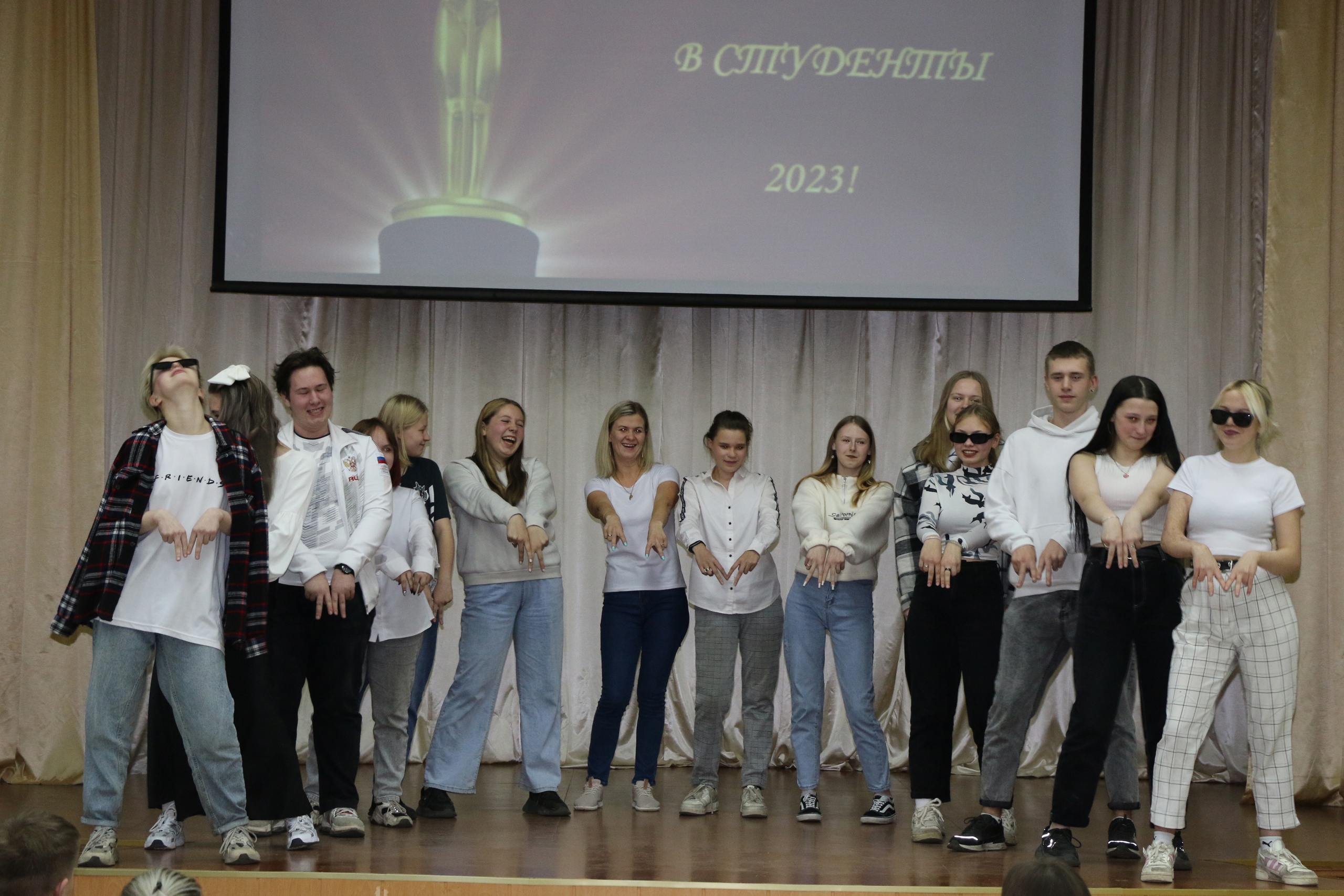 Посвящение студентов проходило в виде творческого состязания между командами первокурсников колледжа. Тема мероприятия – «Кинематограф»! Каждой команде в результате жеребьёвки достался свой жанр кино, исходя из которого они и готовили свою визитную карточку и музыкальный номер!