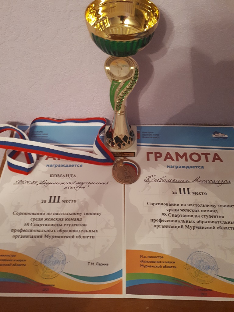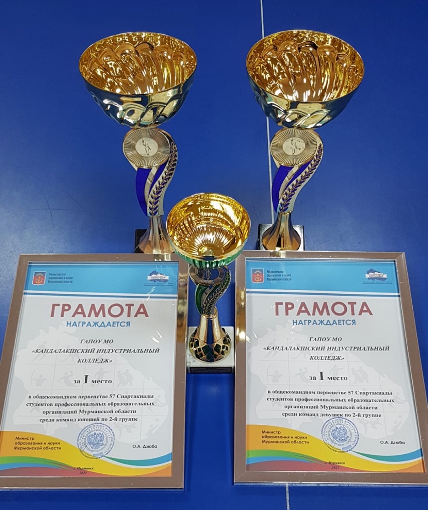 Команде Кандалакшского индустриального колледжа, ставшей ПОБЕДИТЕЛЕМ 57 СПАРТАКИАДЫ, были вручены кубки и грамоты Министерства образования и науки Мурманской области.