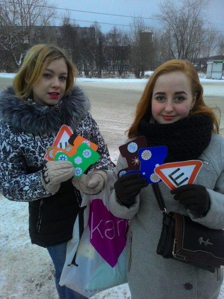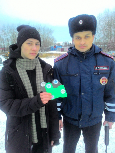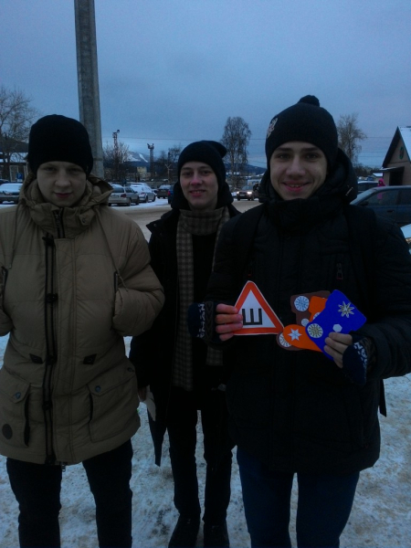Всем участникам акции студенты и инспекторы вручали «Новогодний валенок», вручную украшенный студентами, как символ того, что зимняя «обувь» нужна всем – и водителям, и их автомобилям. А чтобы автовладельцам не пришлось заезжать в автомагазины, вместе с валенками сотрудники ГИБДД вручали им наклейку «Шипы», за отсутствие которой с прошлого года введен штраф в размере 500 рублей.