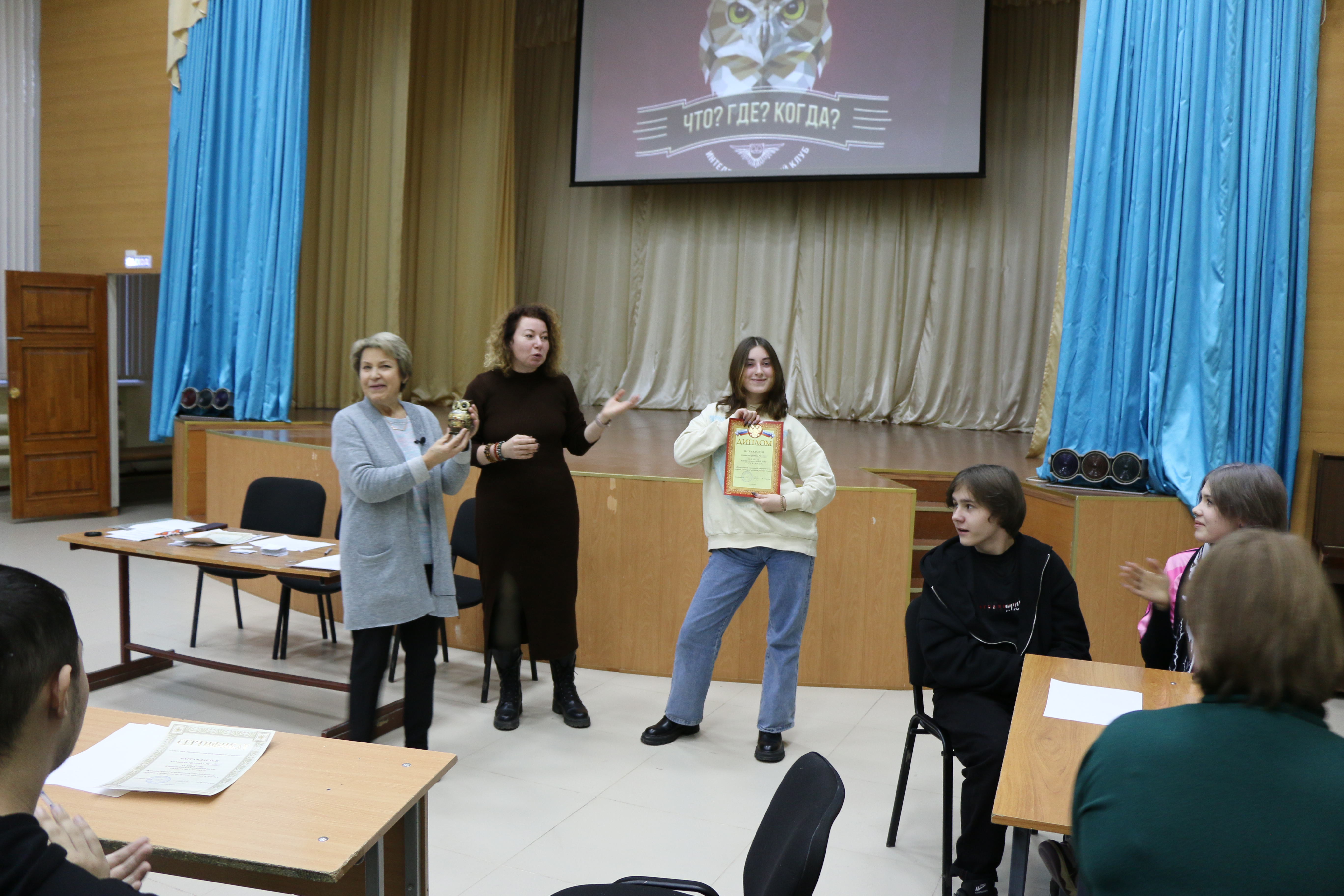 31 октября в актовом зале колледжа состоялась интеллектуальная игра “Что? Где? Когда?». Символом данной игры является Сова. Сова – это мудрость. В древние времена она считалась священной птицей и ассоциировалась с разумом, тайной знания. Сова направлена на землю для помощи людям. Сова – символ учености.