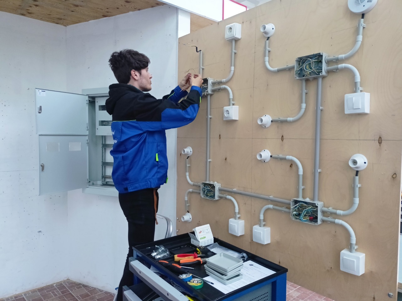 Экзамен включает в себя коммутацию ЭЩ, РК; поиск неисправностей и программирование.