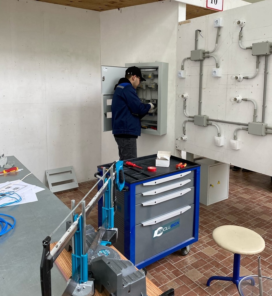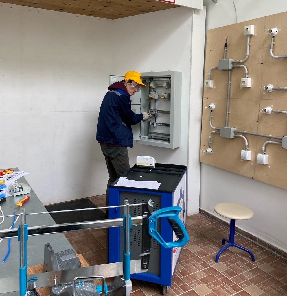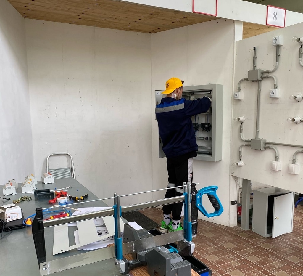 Экзамен включал в себя сборку этажного щита, коммутацию распределительных коробок, поиск неисправностей в силовом распределительном щите и программирование логического реле.