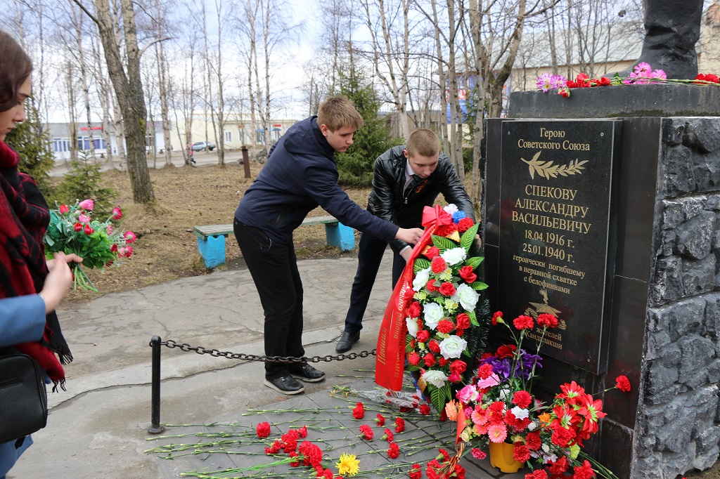 Гости и студенты возложили цветы к памятному знаку «Винт» и памятнику Спекова.