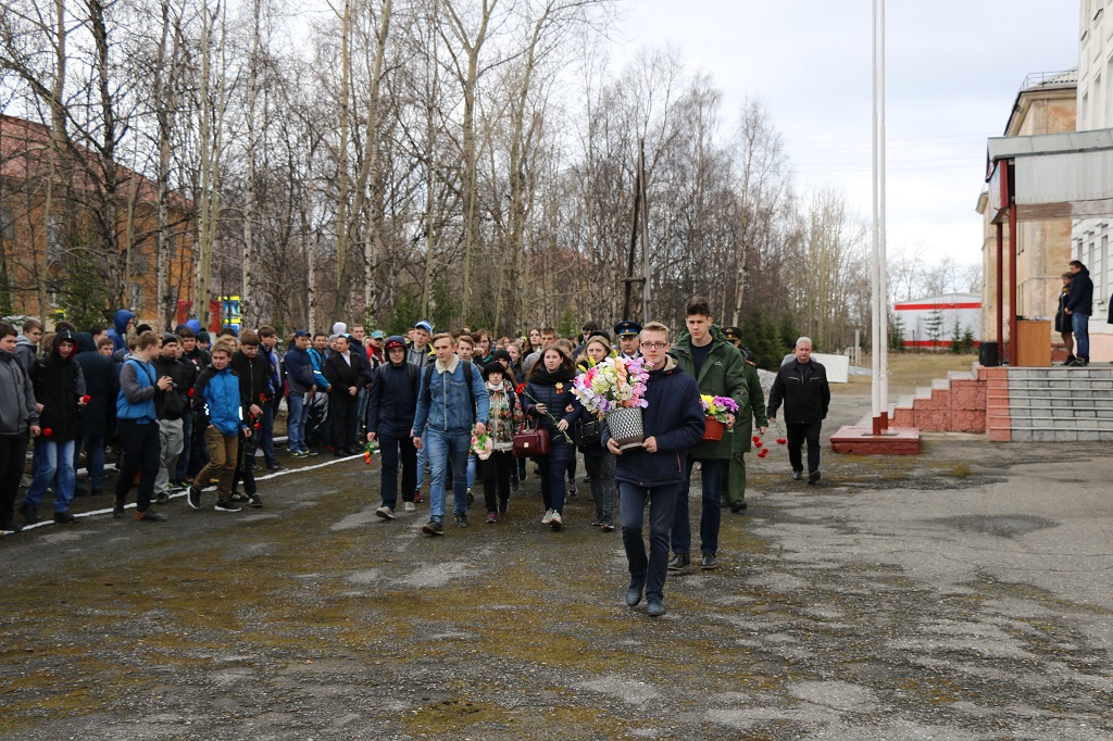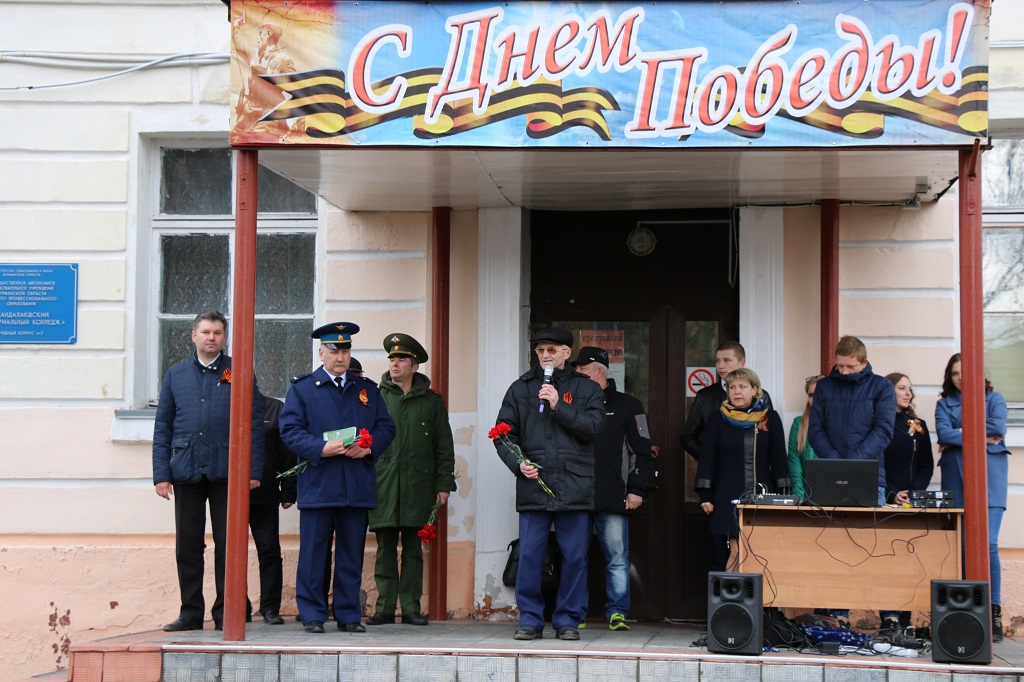 Перед студентами выступили заместитель директора колледжа Саломахин Ю.В., заместитель главы администрации города Кандалакши Федотов С.О., председатель общественной организации «Совет ветеранов войны и труда» Васильева Р.П., член общественной организации «Боевое братство» Крук М.В., начальник военного комиссариата Мурманской области по Кандалакшскому и Ковдорскому району и г. Полярные Зори Бешейко В.В.