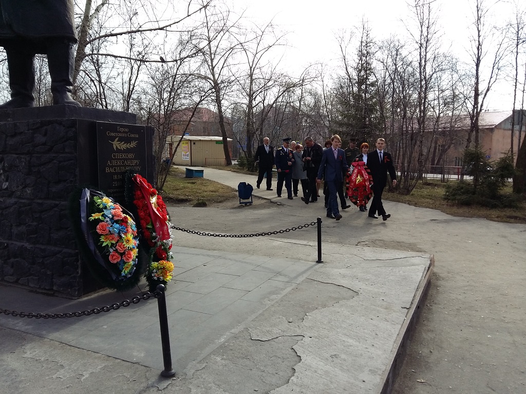 Гости и студенты возложили цветы к памятному знаку «Винт» и памятнику Спекова.