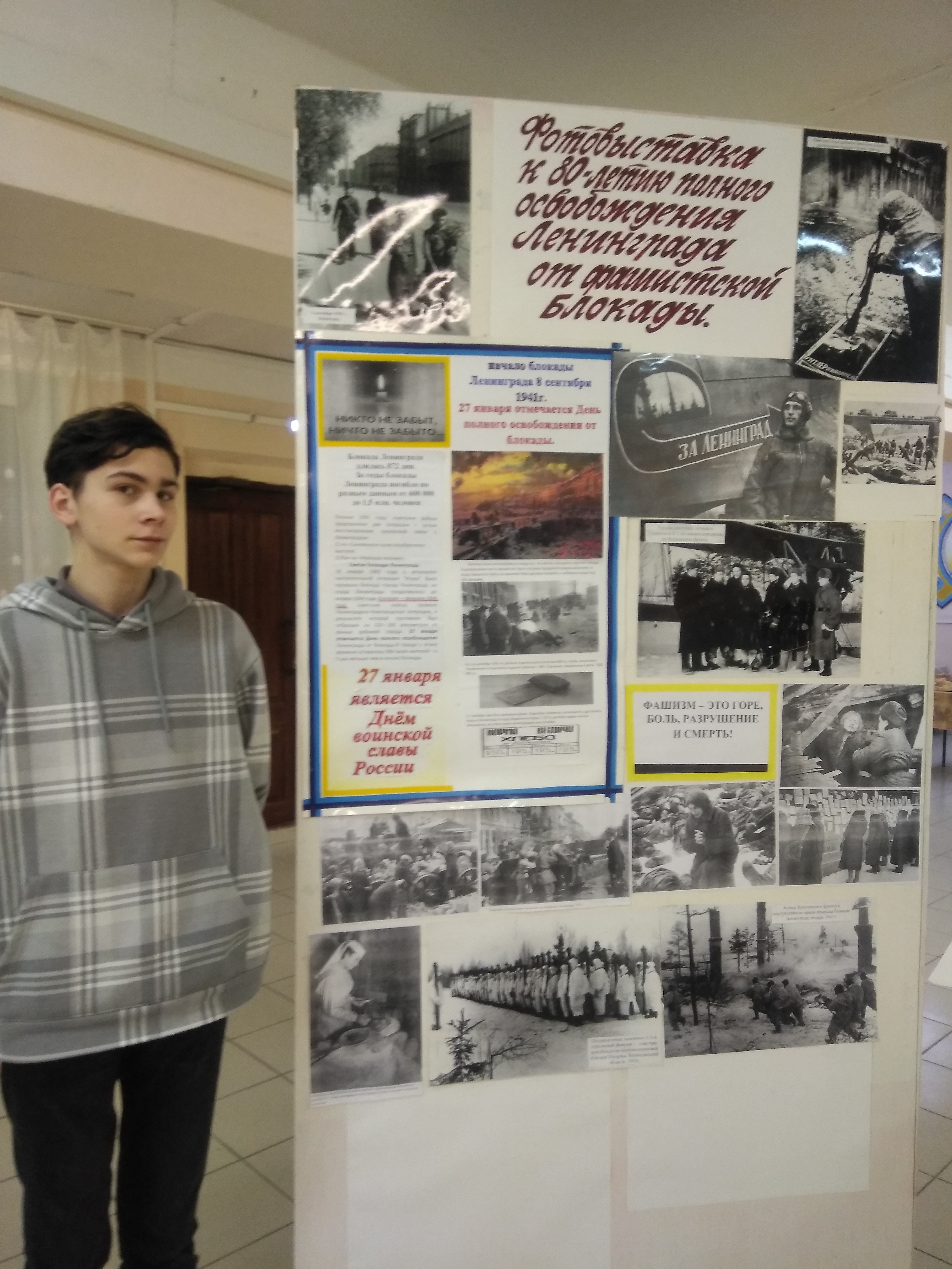 Участник творческой группы «На исследовательском меридиане» Матвей Квардаков подготовил информационный стенд и выполнил презентацию для осмысления сверстниками всех ужасов, которые нёс и несёт фашизм человечеству.