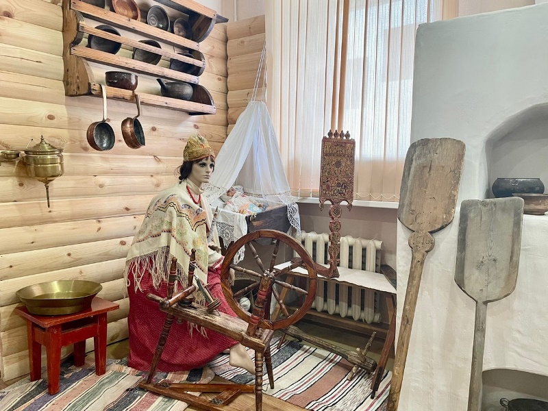 В музейной экспозиции представлены прялки: поморские, северодвинские. За ними проводили женщины, и девушки на выданье большую часть свободного времени.
