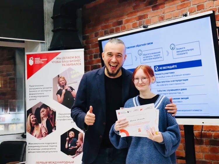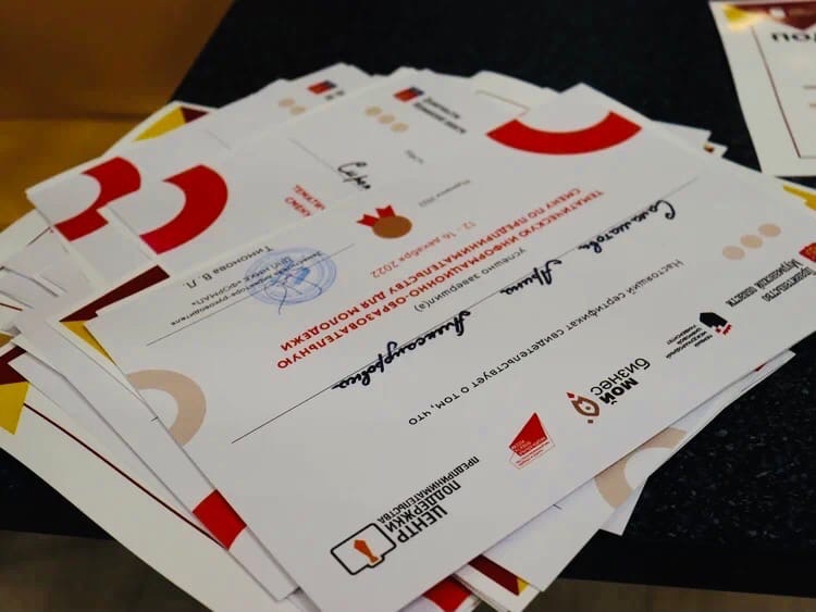 16 декабря 2022 года на площадке Центра «Мой Бизнес» г. Кандалакша на итоговом, очном мероприятии наши девушки получили сертификаты о завершении образовательной смены по предпринимательству для молодежи. Также все участники получили именные подарочные сертификаты, номиналом от 10000 до 30000 рублей, на дальнейшее обучение в образовательных программах Первого международного цифрового университета. Теперь наши студентки точно знают, что лучшие инвестиции – это инвестиции в свое образование!