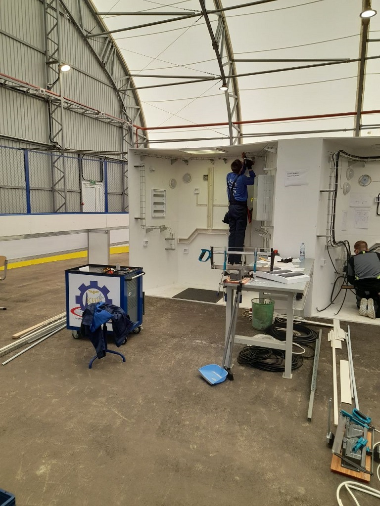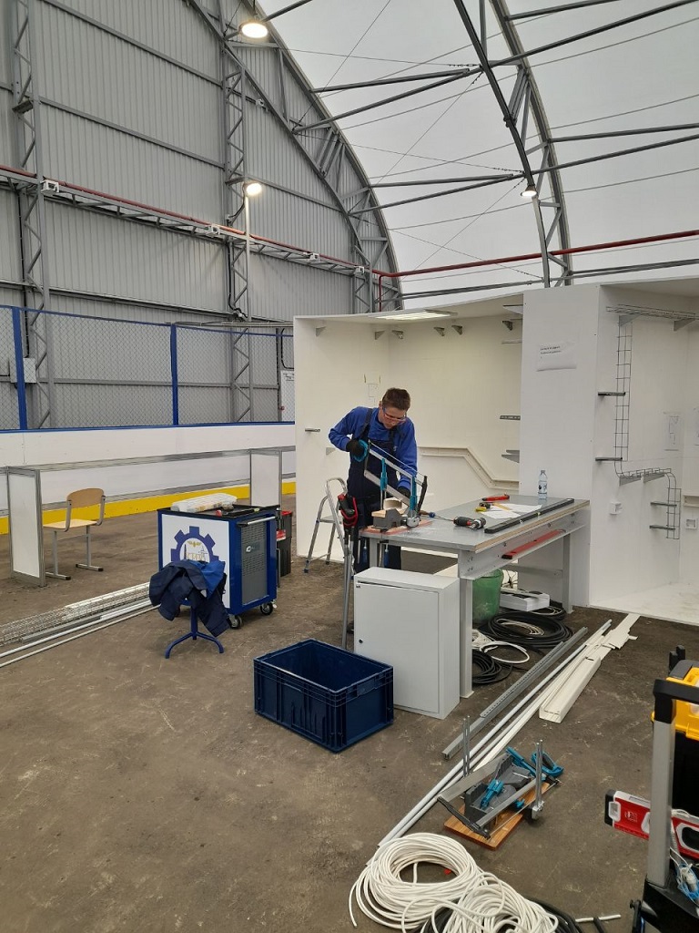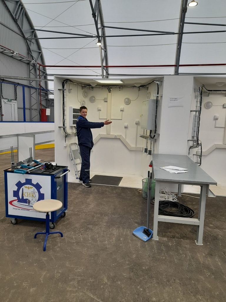 Андрею предстояло продемонстрировать свое мастерство в компетенции «Электромонтаж»: монтаж силового (ЩУ электродвигателем в составе реле времени и интерфейсное реле, контактор и магнитные пускатели, а также концевые выключатели, индикаторы лампы и кнопочный посты) и осветительного (ЩО с автоматическим выключателями, датчик движения, одно- и двухклавишные выключатели и переключатели) оборудования, выполнить пуско-наладочные работы и программирование логического реле.