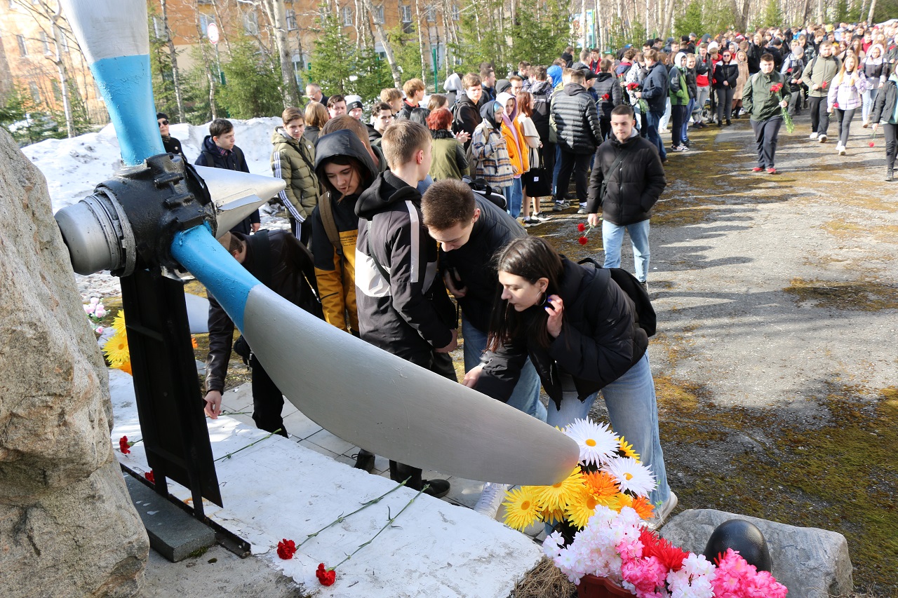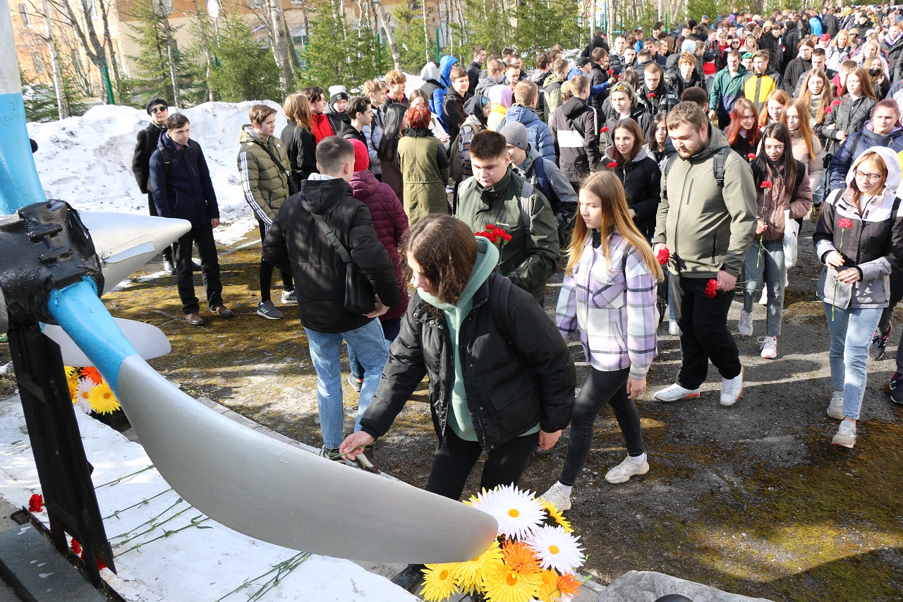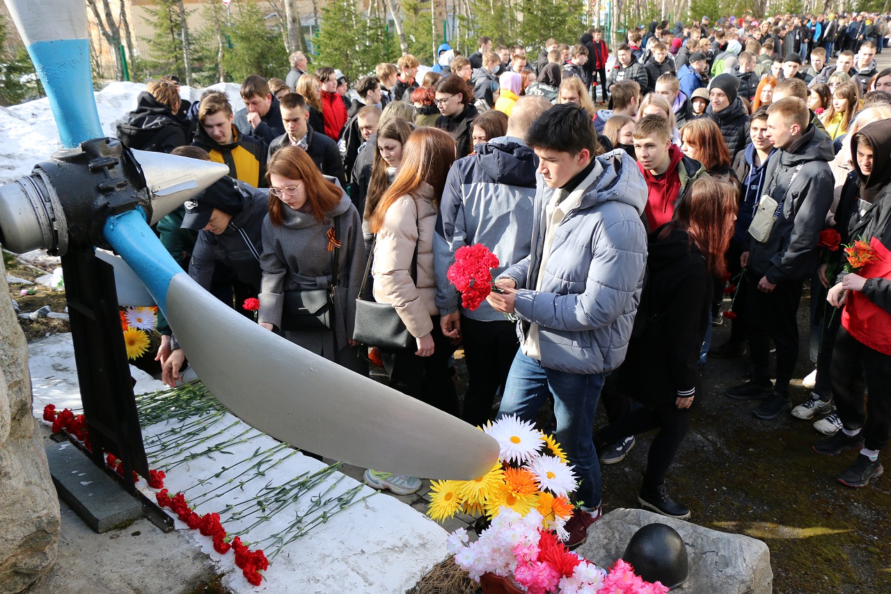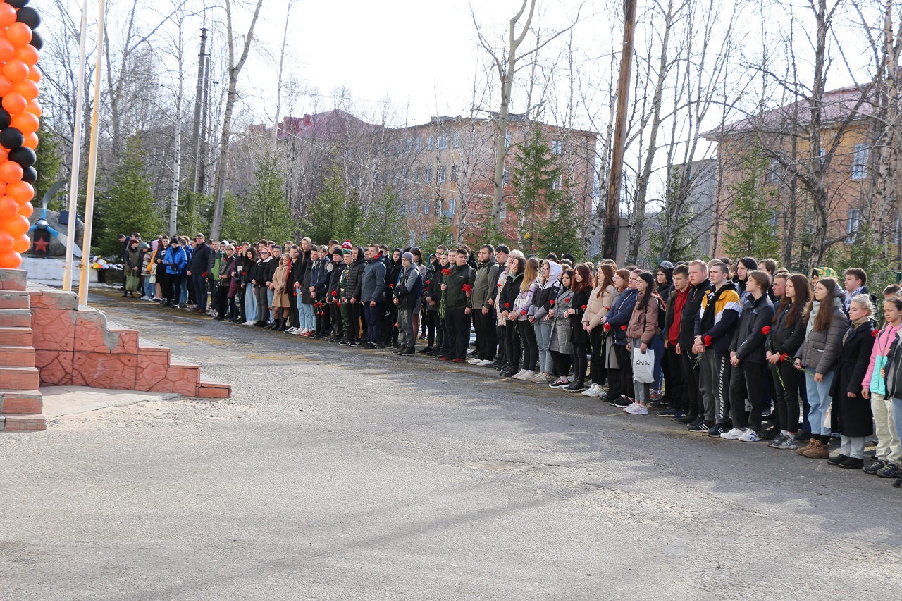 9 Мая не только всенародный праздник, но и день Памяти и Печали. Минутой молчания участники линейки почтили память тех, кто сложил свою голову на алтарь Человечества. А затем возложили цветы к памятному знаку «Винт».