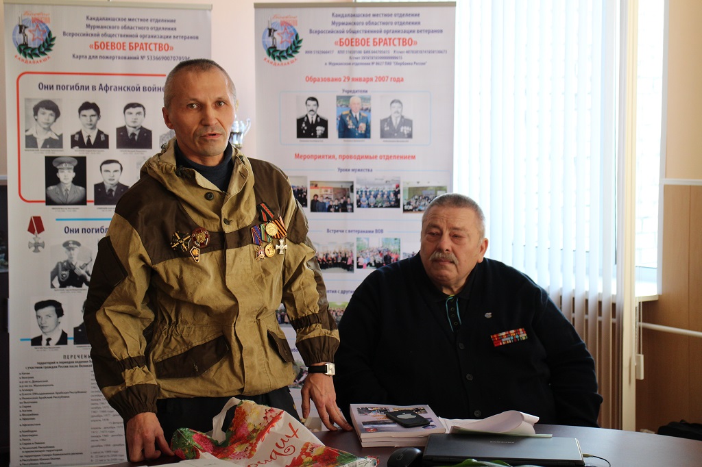 На встрече состоялась презентация книги «Кандалакша помнит своих сыновей», выпущенная к 10-летнему юбилею общественной организации «Боевое братство». Книга содержит воспоминание кандалакшан, ветеранов боевых действий, героически исполнивших свой воинский долг в локальных войнах и военных конфликтах. Несколько экземпляров книг было передано в дар колледжу.