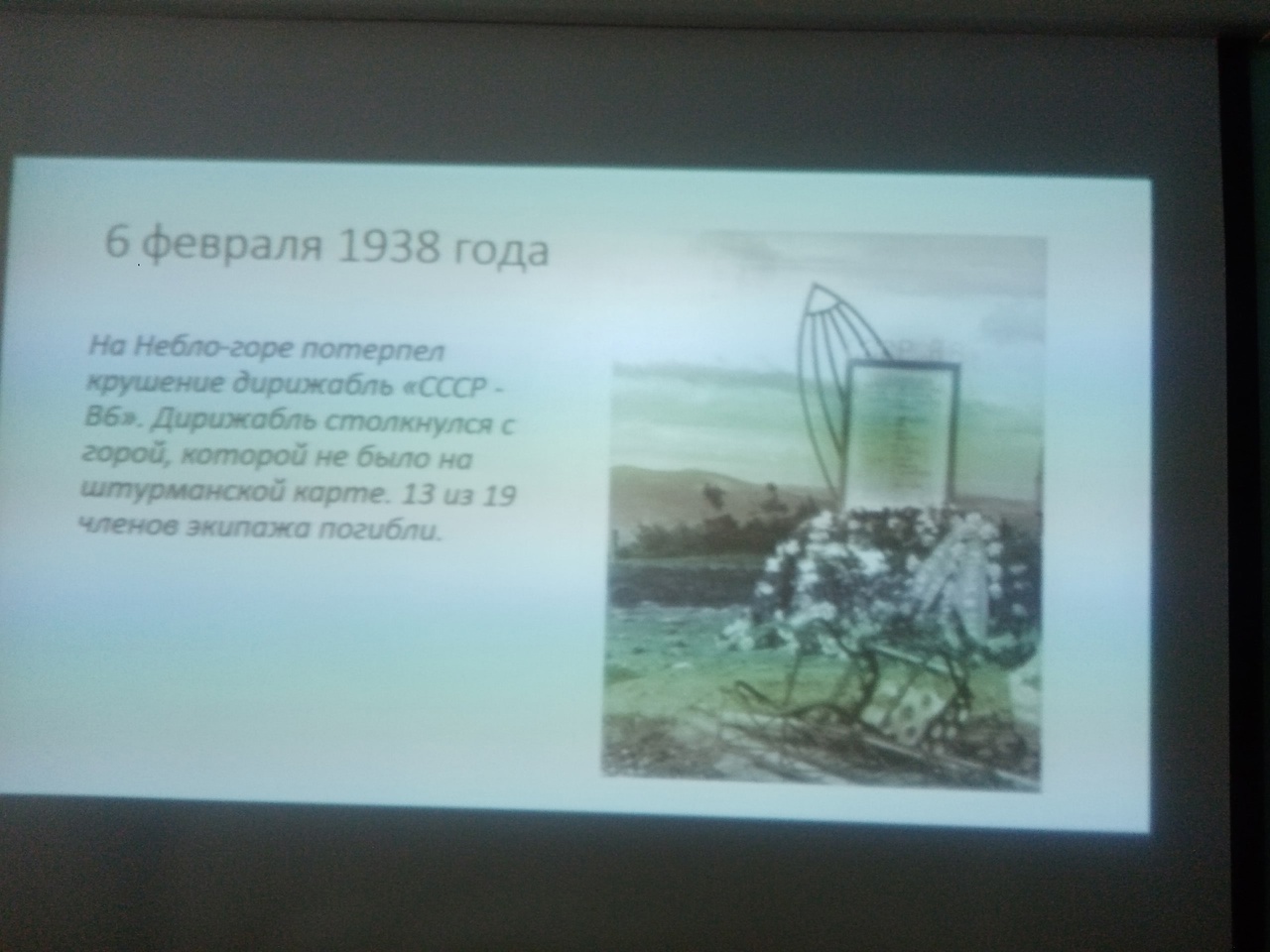 16 февраля 2023 года в ГАПОУ МО «КИК» был проведен классный час на тему: «Как погиб дирижабль «СССР В-6». Мероприятие проводил Болотний Александр Александрович, библиотекарь краеведческого сектора отдела обслуживания центральной библиотеки имени Николая Владимировича Копысева. Для студентов колледжа, двух учебных групп № 261/2 по профессии «Машинист локомотива», группы № 111 по профессии «Продавец, контролёр, кассир» Александром Александровичем подготовлен интереснейший исторический материал, выдержки из документальных фильмов, фотографии тех лет, вырезки из печатных изданий. Студенты узнали, что 5 февраля 1938 года самый большой советский дирижабль «СССР В-6» - «Осоавиахим» врезался в гору недалеко от города Кандалакша. В результате катастрофы погибли 13 человек. Они летели спасать полярников папанинцев, оказавшихся на льдине. Из расчётов выходило, что только дирижабли способны быстро долететь до полярников и эвакуировать их с льдины. Как отмечали эксперты, в течение всего полета материальная часть дирижабля работала безотказно. Причиной катастрофы назовут отсутствие на борту надежных средств навигации, несовершенстве системы управления, схематичность карты, на которой вместо горы было обозначено болото и решение командира двигаться на опасно малой высоте в плохую погоду. Эта трагедия, как и гибель других советских дирижаблей, надолго поставила крест на их строительстве.