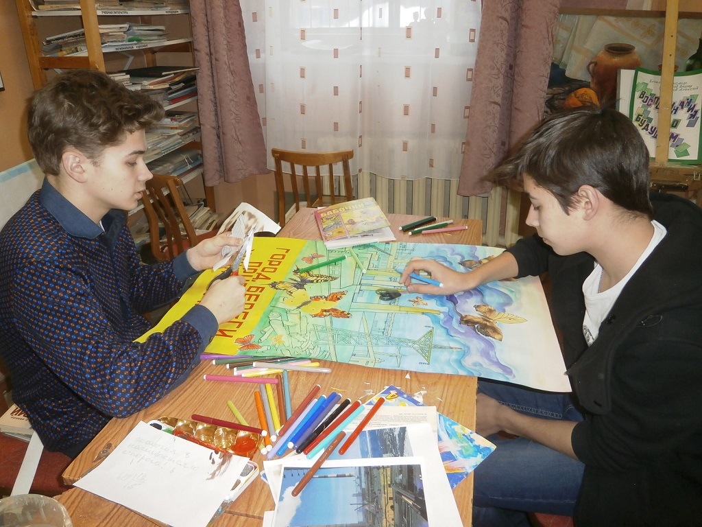 Обучающиеся молодёжного объединения «Творческая мастерская»: Филиппов Андрей, Филиппов Алексей, Шуркачёва Софья, Баталов Александр приняли участие в мероприятиях студенческой научно - технической конференции СНТК-2017, посвященной Году экологии, в конкурсе «Экоплакат», организованном кафедрой экологии, инженерных систем и техносферной безопасности (ЭИСиТБ) ФГБОУ ВО «Мурманский государственный технический университет».