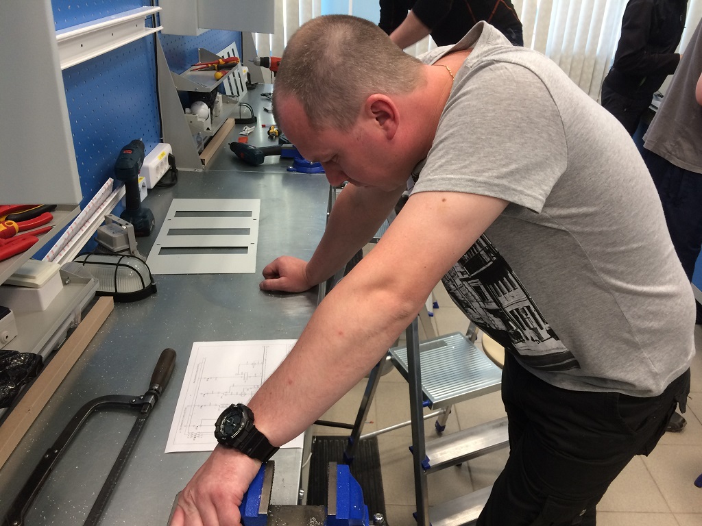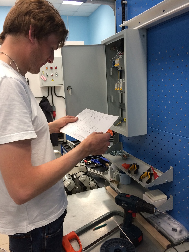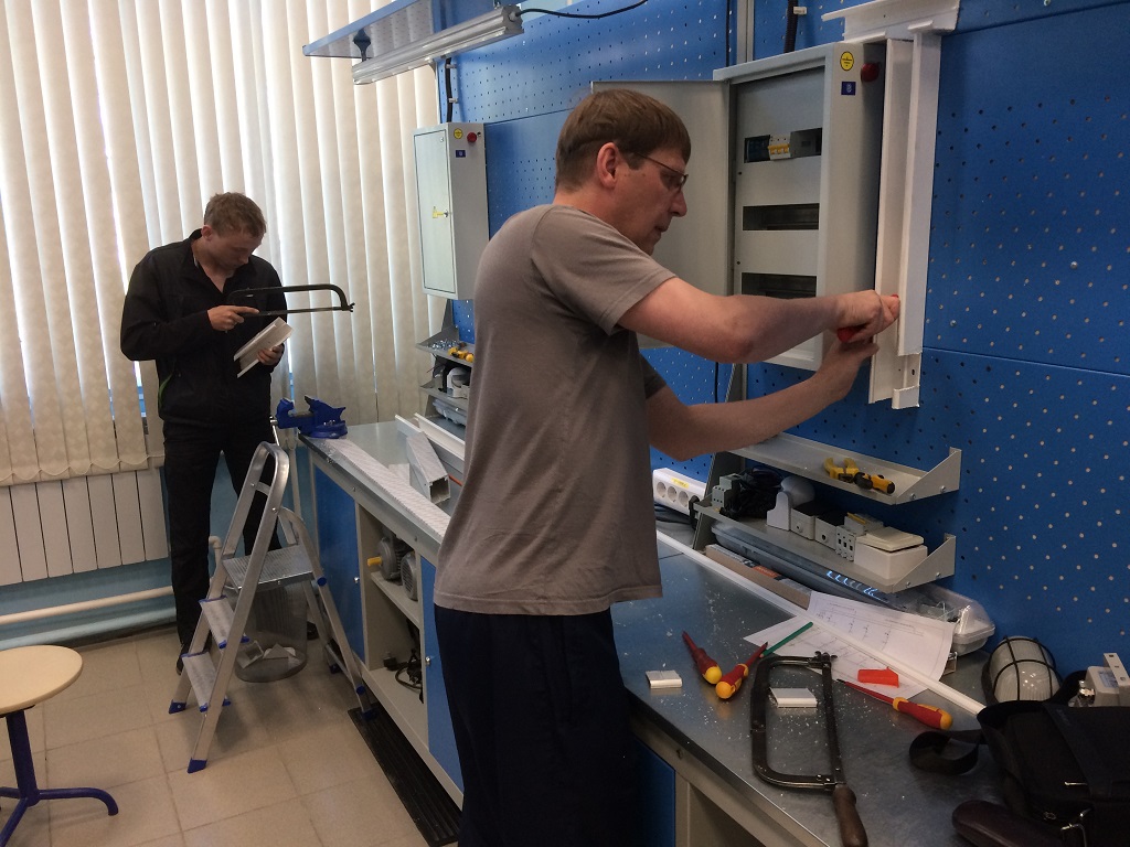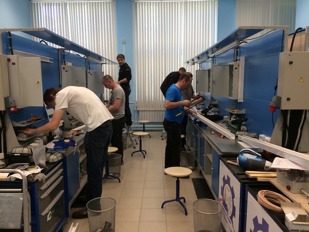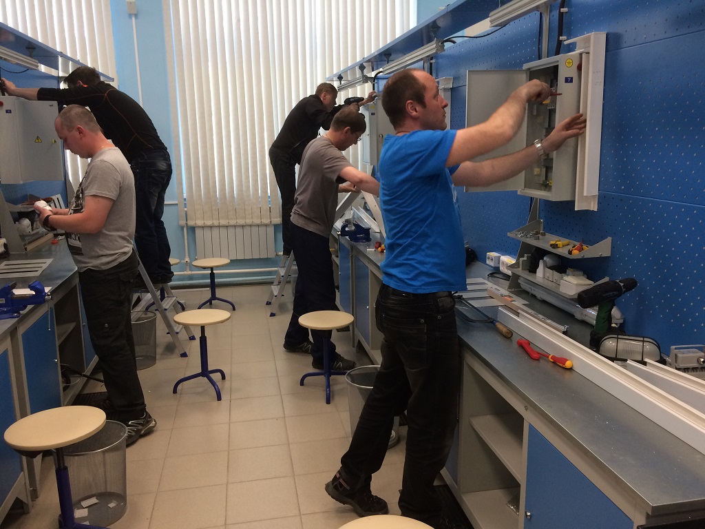 16.06.2017 на базе Кандалакшского индустриального колледжа был проведён практический этап конкурса по профессии «Электромонтёр». В конкурсе принимало участие 6 человек, которые выполняли электромонтажные работы по сборке схем подключения электрических устройств.