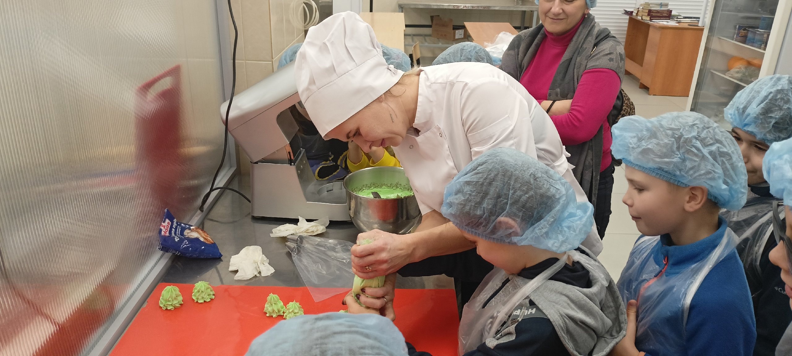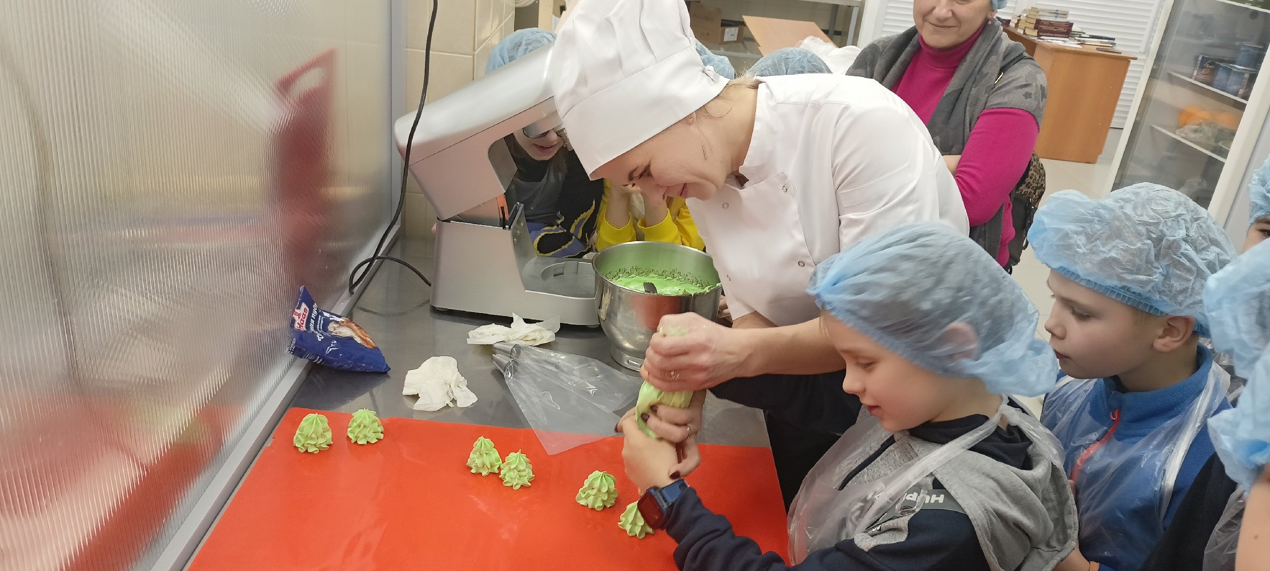 24 ноября 2023 года обучающиеся 3 "А" класса МБОУ СОШ № 2 посетили наш колледж с целью попробовать себя в качестве кондитеров и машинистов локомотива. Пробы прошли в учебных мастерских колледжа под руководством наставников Воробьевой Ирины Валерьевны и Доценко Владислава Юрьевича. Школьники познакомились с назначением и техническим оснащением учебной мастерской, правилами безопасной эксплуатации оборудования и санитарно-гигиеническими требованиям. Наставники учитывали индивидуальные возможности школьников, что помогло ребятам успешно приготовить новогодний зефир и совершить рейс, справляясь с различными ситуациями, которые возникали на пути следования.
