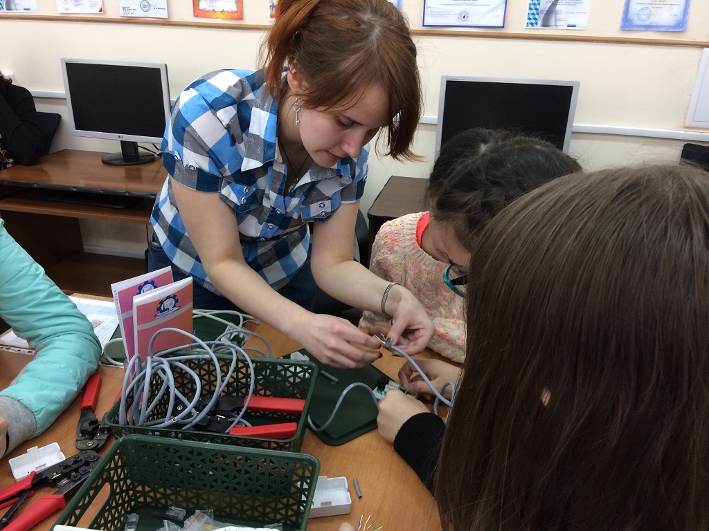 Школьников, разделили на 3 команды и каждой из команд было дано соответствующее задание. На мастер-классе учащиеся самостоятельно проектировали цифровое устройство, занимались обжимом сетевого кабеля и розетки для прокладки локальной сети, а также устраняли неисправности персонального компьютера. Под руководством обучающихся колледжа, школьники с удовольствием выполнили поставленные задачи. По окончании мастер-классов участников ждали сладкие призы в виде выпечки приготовленной обучающимися колледжа по профессии «Пекарь».