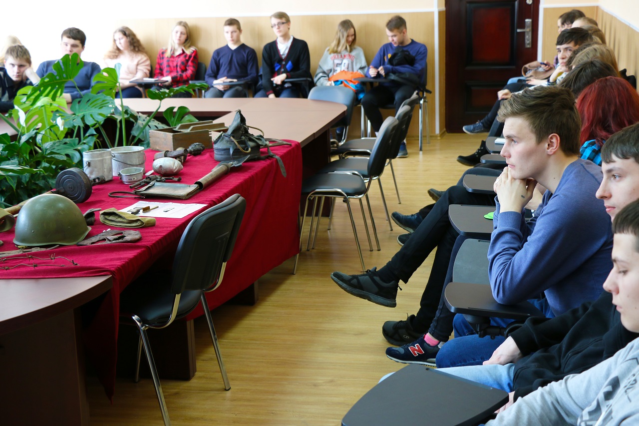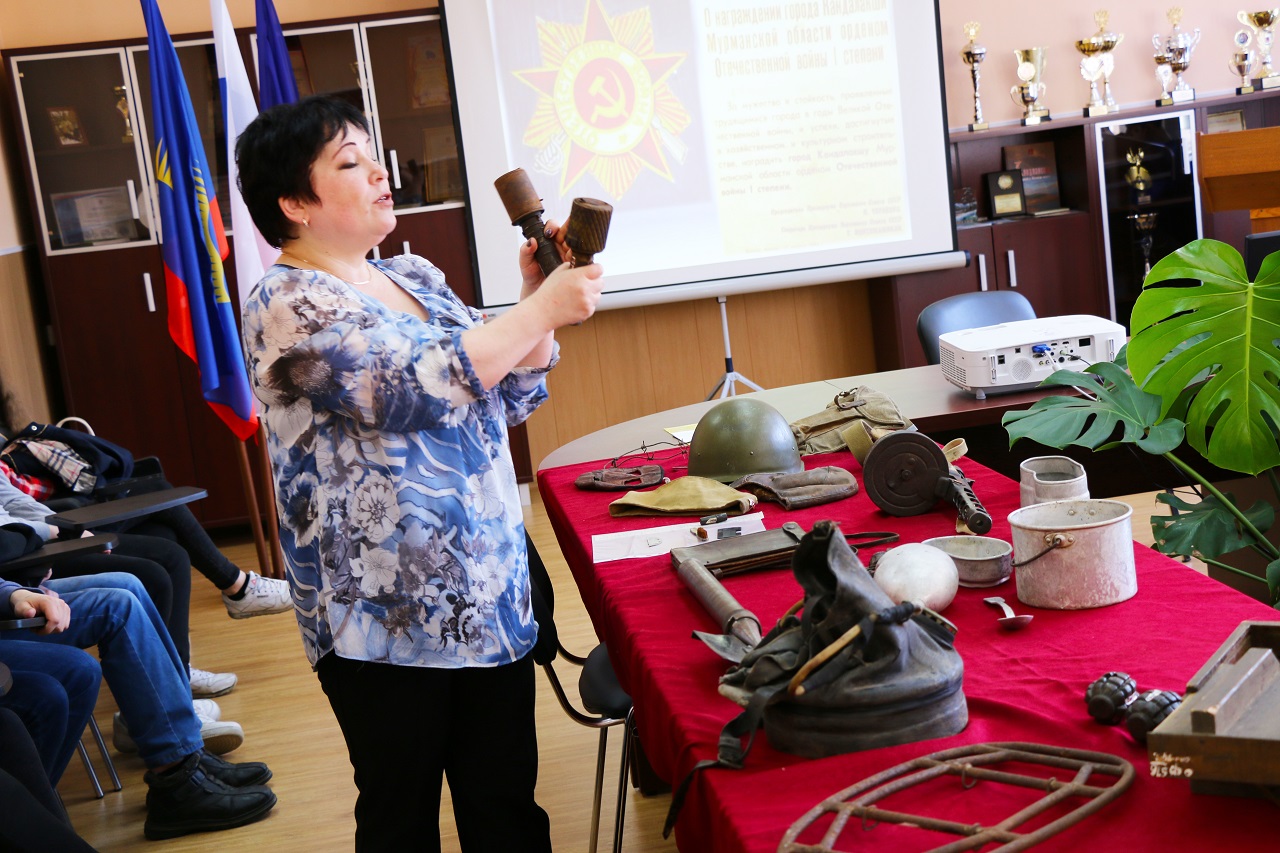 18 апреля с некоторыми из этих экспонатов смогли ознакомиться наши студенты после презентации «Боевые действия на Кандалакшском направлении», которую представила и провела сотрудник музея Лажиева Г.В.