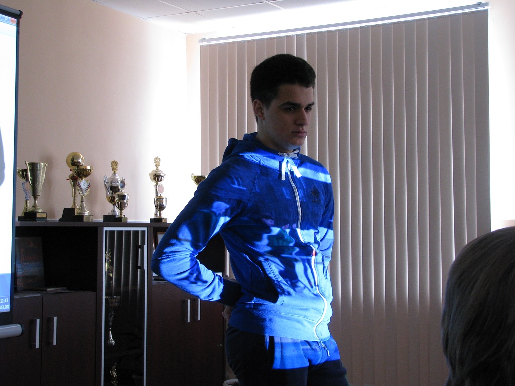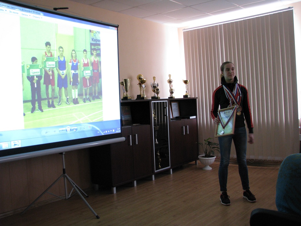 В рамках дискуссий студентам и преподавателями были представлены доклады и презентации о таких видах физкультурно-спортивной деятельности, как натурбан, хоккей, бокс, лыжи, волейбол. Своим опытом занятий физической культурой и спортом поделились студенты колледжа. Зырянов Александр – группа № 340, член сборной команды Российской Федерации по натурбану. Чемпион РФ по натурбану среди юниоров в двойке и одиночке. Перевалова Вероника – группа № 320, серебряный призёр Северо-Запада по боксу. Победитель олимпиады по физической культуре. Дмитриенко Илья – группа № 61/2 участник хоккейной команды колледжа и сборной команды г.Кандалакши. Суслова М.С. – преподаватель физической культуры. Лучший игрок по баскетболу г.Кандалакши 2016 года. Член сборной команды по баскетболу г.Кандалакши.