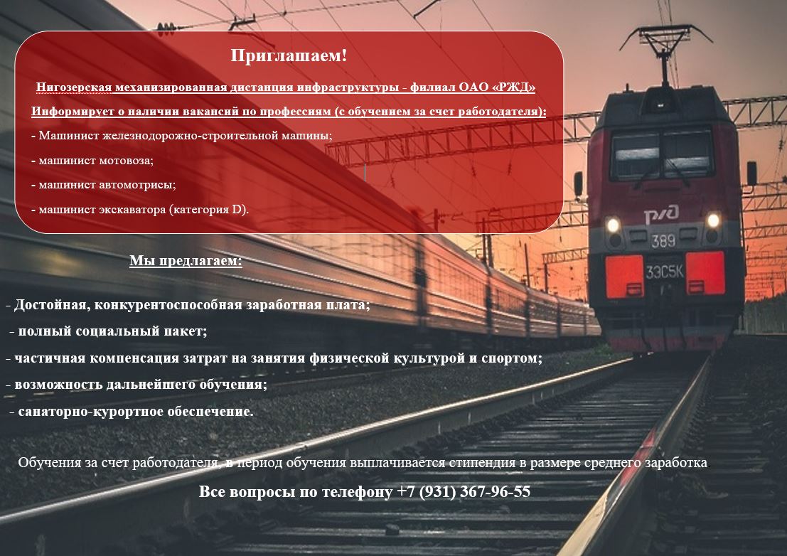 Нигозерская механизированная дистанция инфраструктуры - филиал ОАО «РЖД» Информирует о наличии вакансий по профессиям