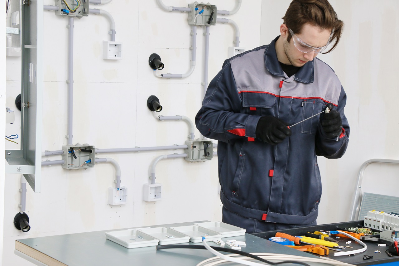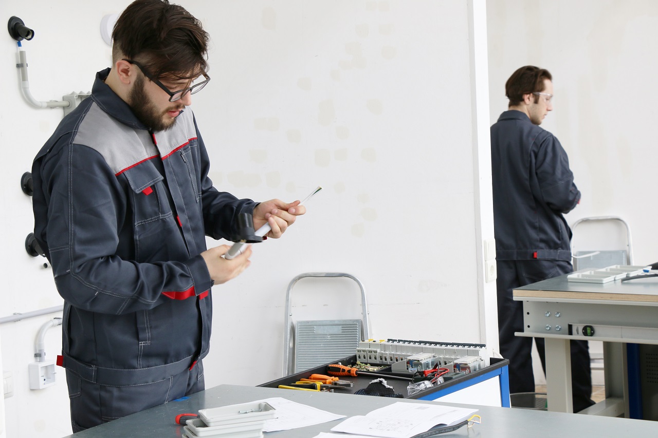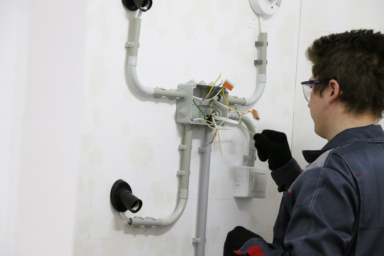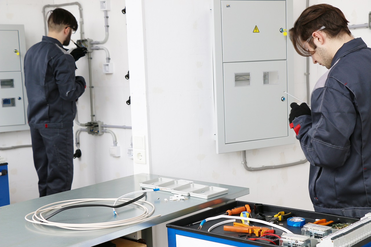 Экзамен включал в себя монтаж схемы силового и осветительного электрооборудования, и выполнение наладочных работ после проверки смонтированной схемы.