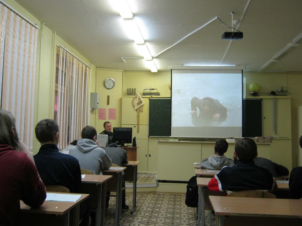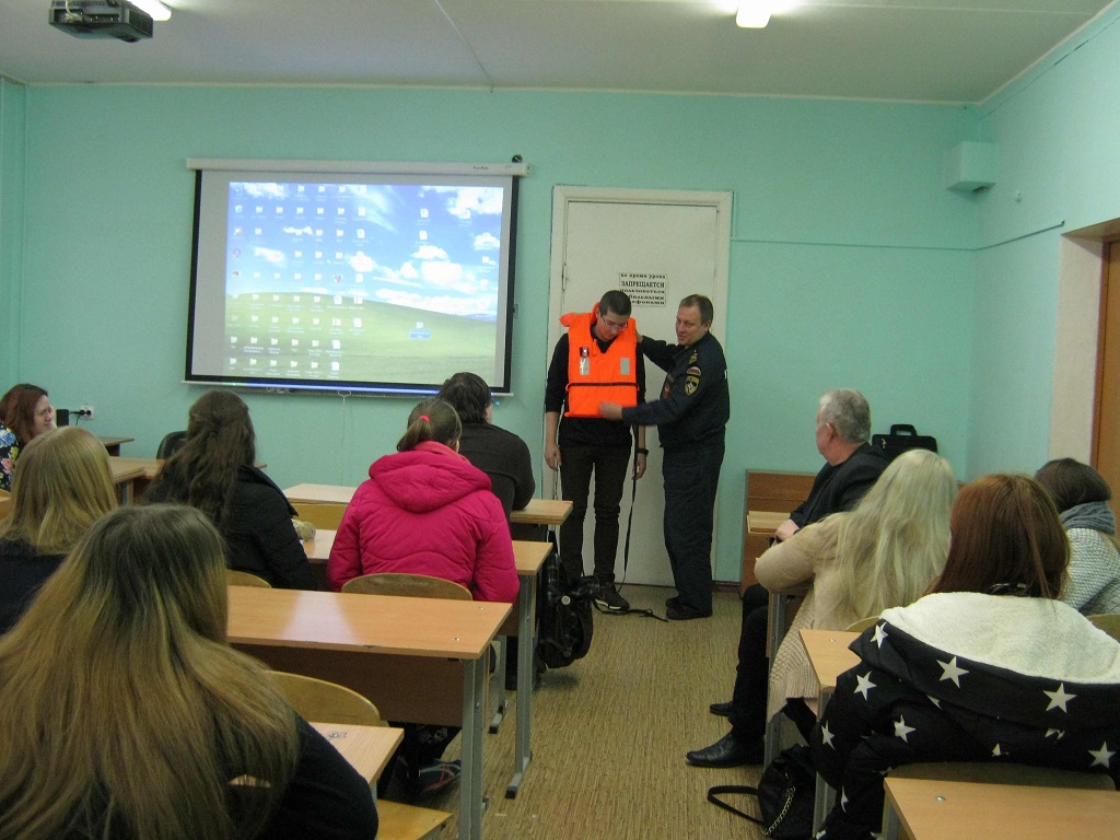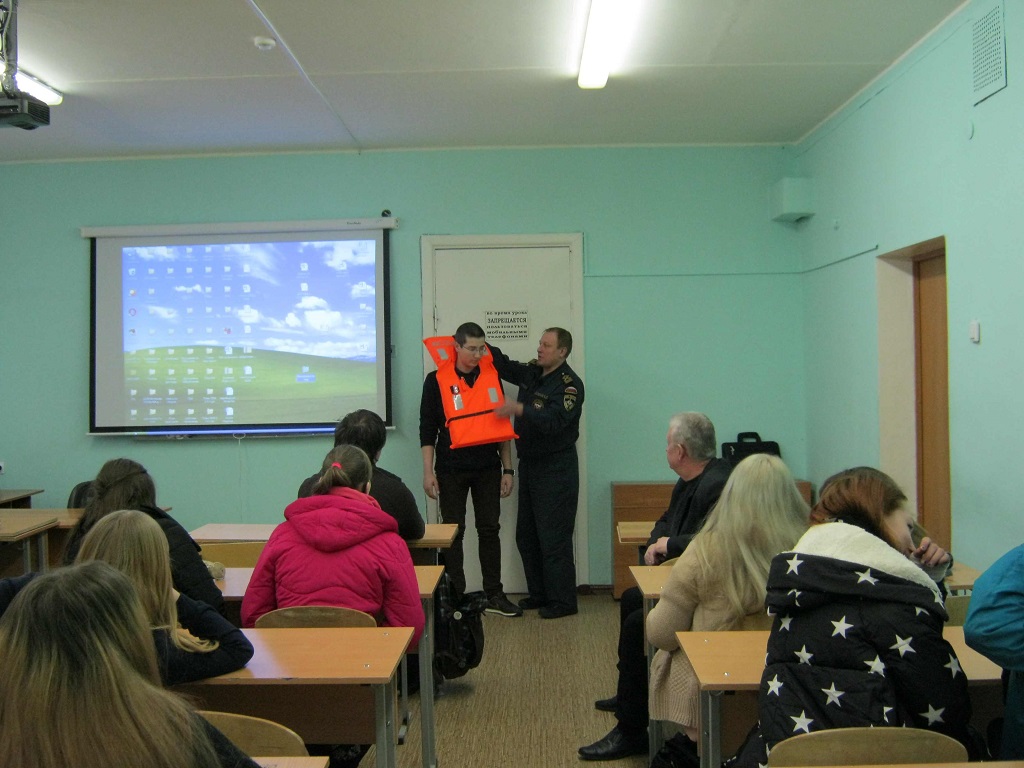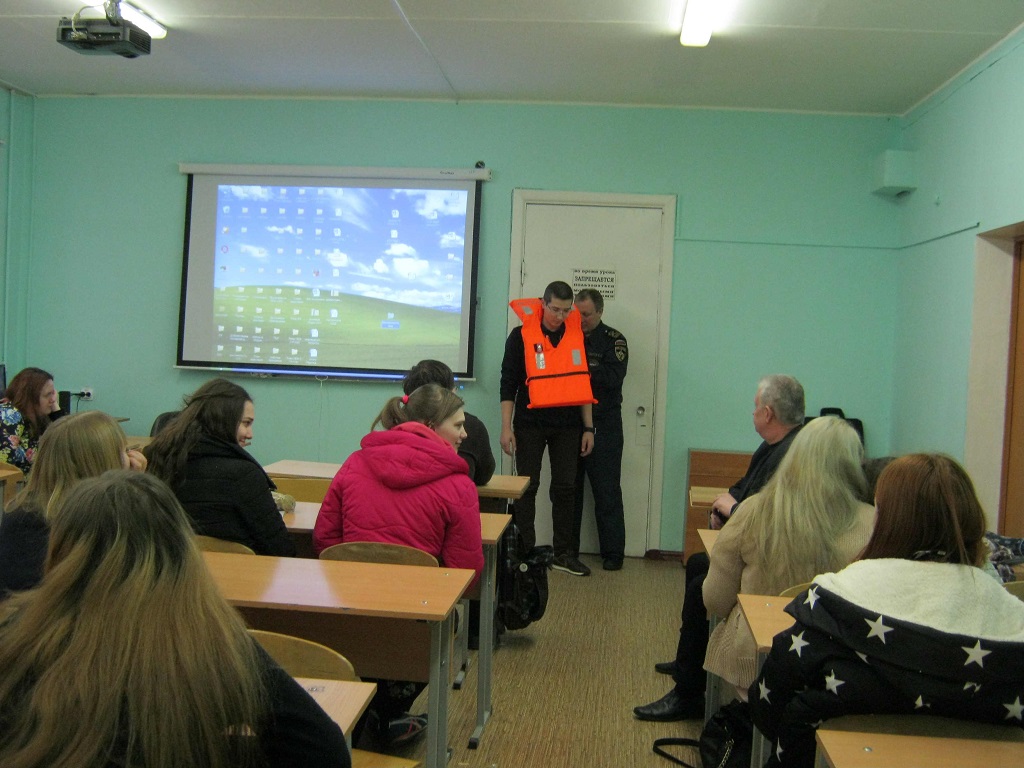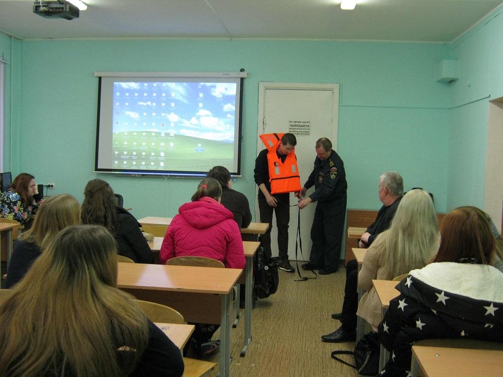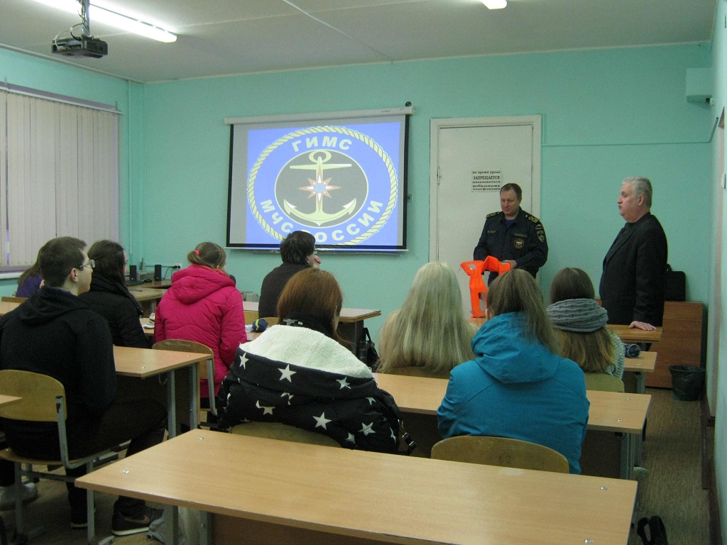 При общении с обучающимися были затронуты такие вопросы как правильно себя вести при чрезвычайной ситуации, правила пользования спасательными средствами, правила безопасного поведения на льду и воде. Представители ГИМС МЧС России ответили на все интересующие вопросы обучающихся колледжа, показали презентацию, касающуюся своей работы.