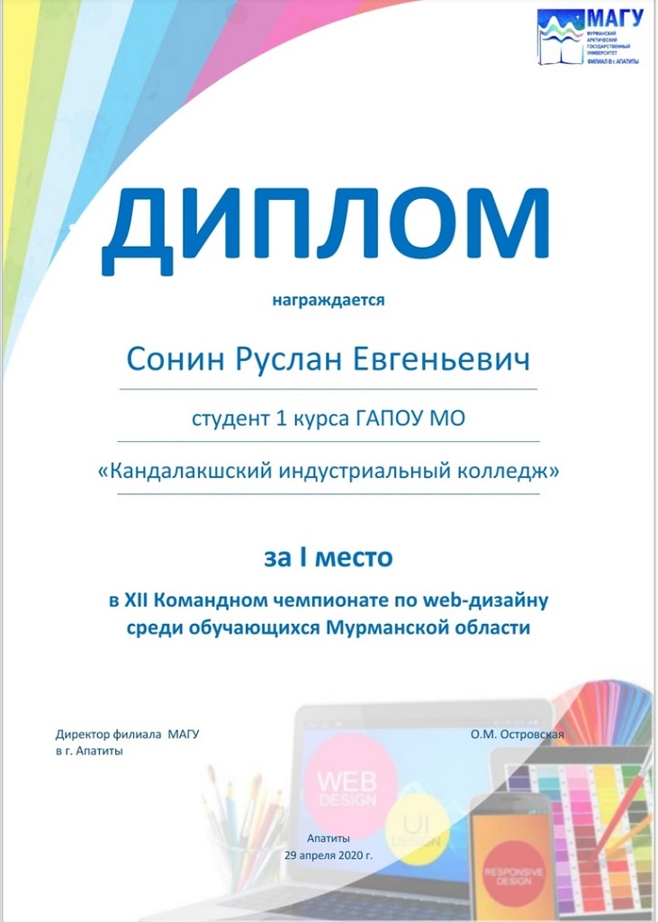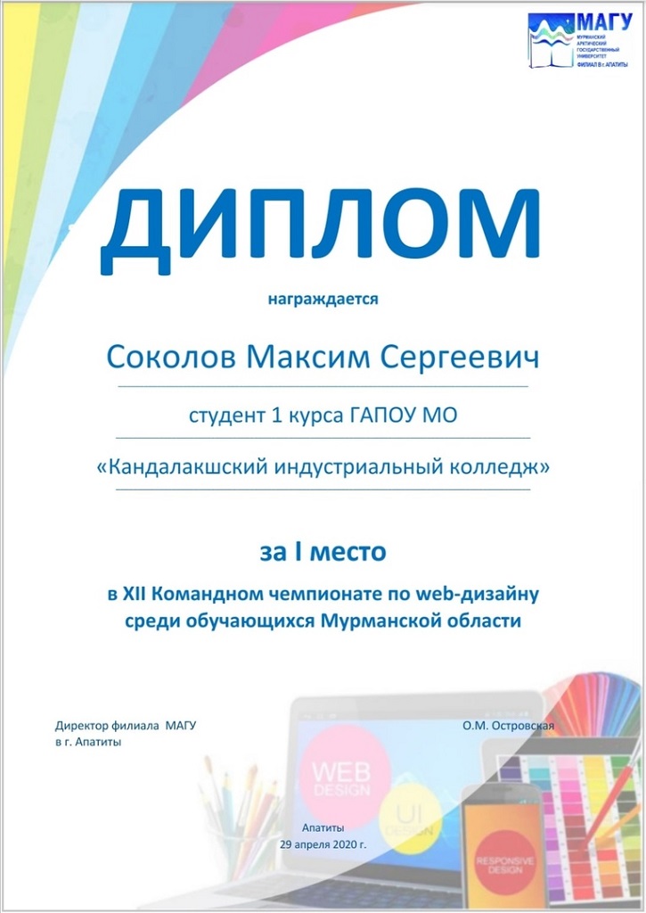 30 апреля 2020 г. в филиале Мурманского государственного арктического университета в г. Апатиты состоялся XII командный чемпионат по web-дизайну среди обучающихся Мурманской области.
