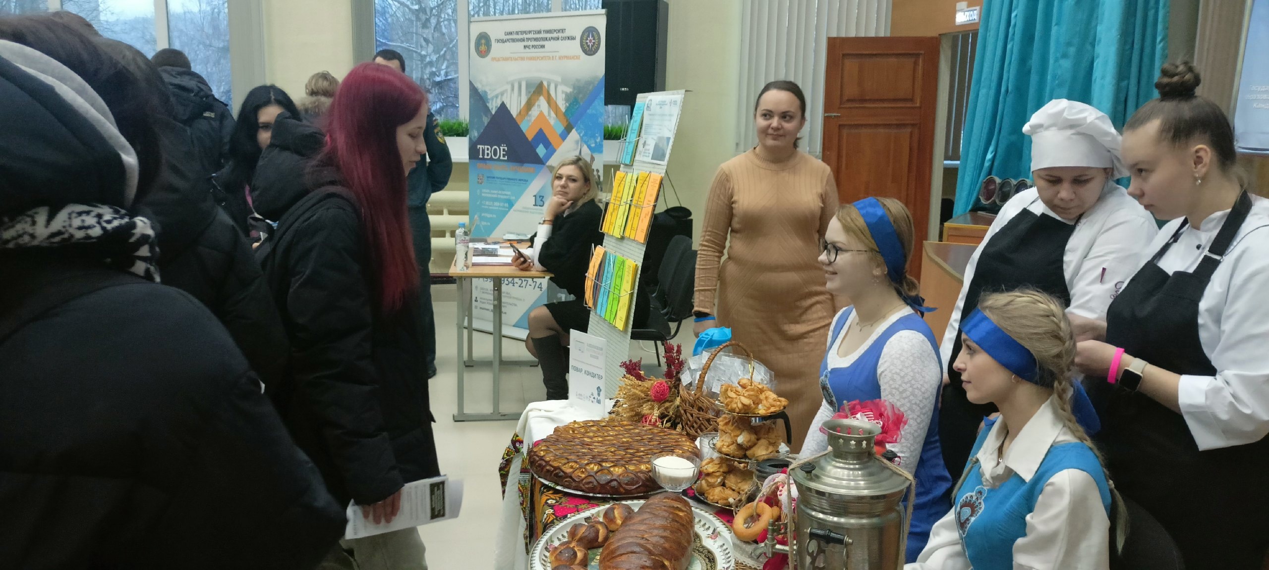 В выставке приняли участие 12 организаций: 6 образовательных организаций Мурманской области и г. Петрозаводска (МАГУ, Кольский медицинский колледж, Полярнозоринский энергетический колледж, Автошкола ДОСААф, ПетрГУ) и 6 организаций - работодателей (Эксплуатационное депо г. Кандалакша, Дистанция пути Кандалакшская ПЧ-40, Специальная пожарно-спасательная часть №6, МО МВД России "Кандалакшский", Пункт отбора на военную службу по контракту). Представители организаций подробно отвечали на все вопросы, интересующие будущих абитуриентов.