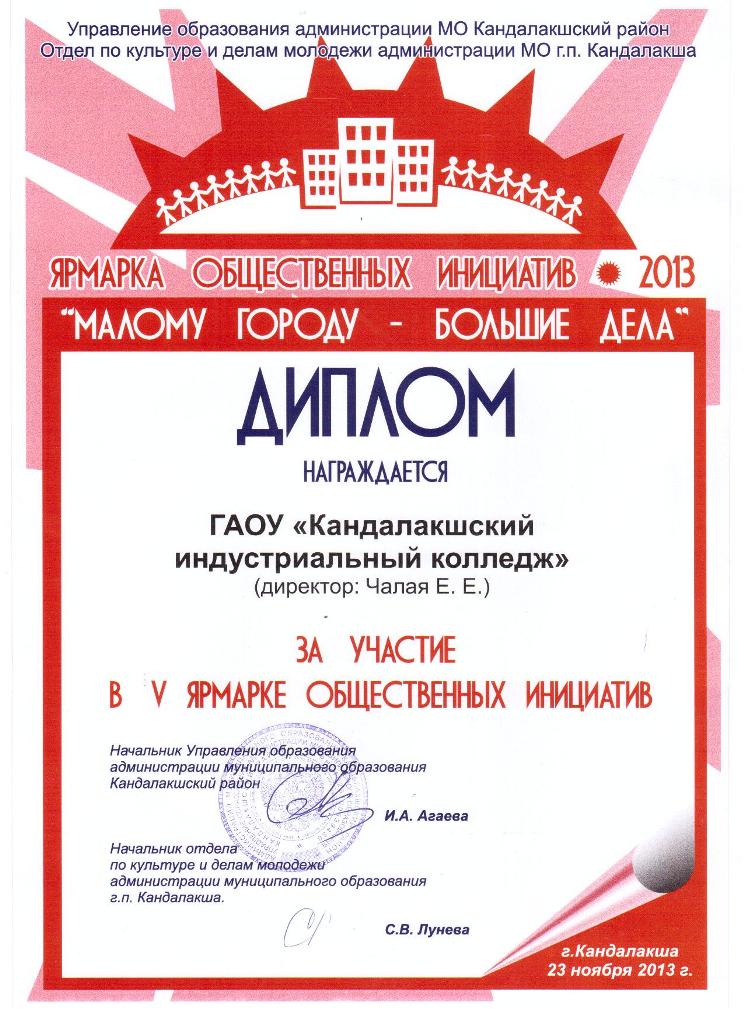 23 ноября 2013 года в Доме Культуры «Металлург» состоялась традиционная ярмарка общественных инициатив «Малому городу — большие дела».