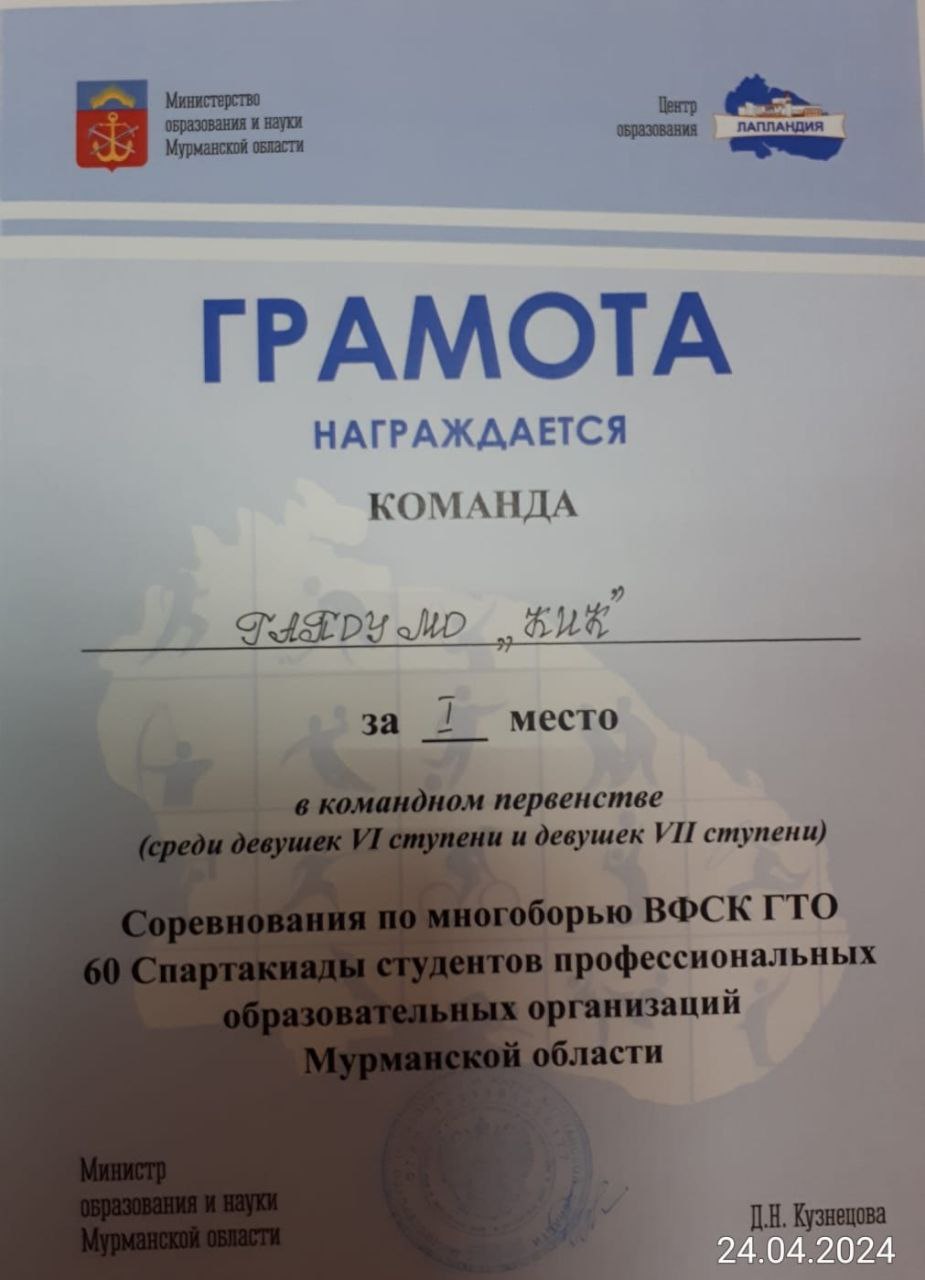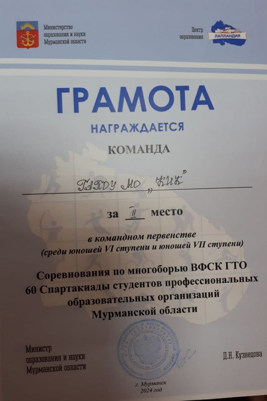 С 18 апреля по 20 апреля 2024 года в столице Заполярья г. Мурманске прошли соревнования по программе многоборья ВФСК ГТО среди студентов образовательных организаций Мурманской области «Арктические студенческие игры» (VI, VII ступень), областные соревнования по многоборью ВФСК ГТО в рамках 60-й Спартакиады студентов ПОО вторая группа.