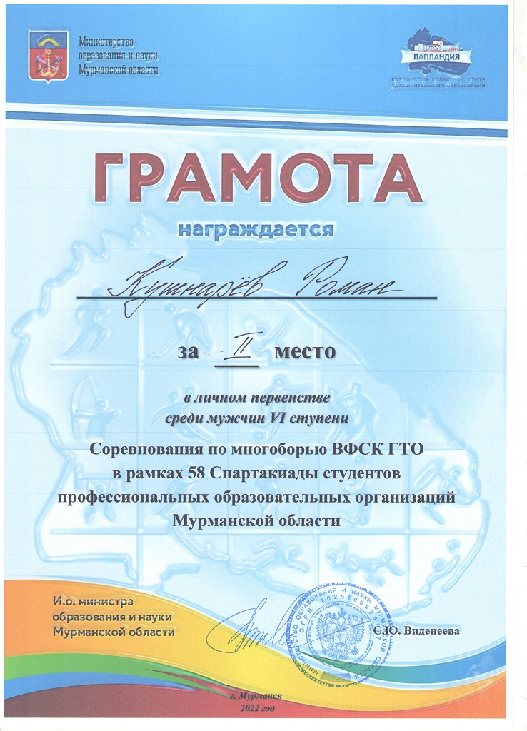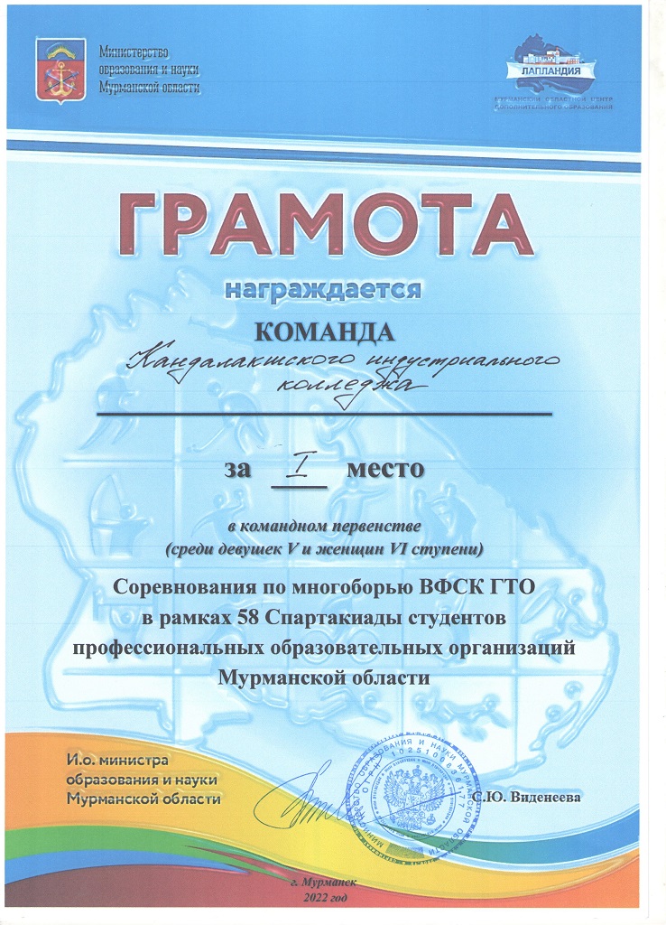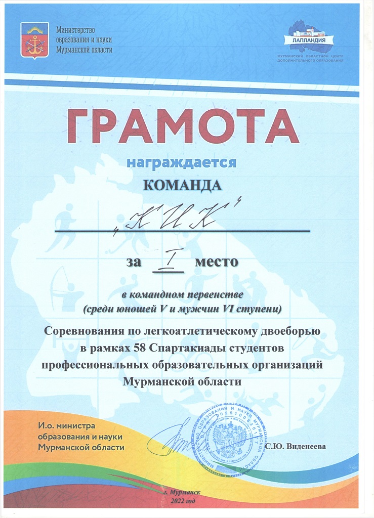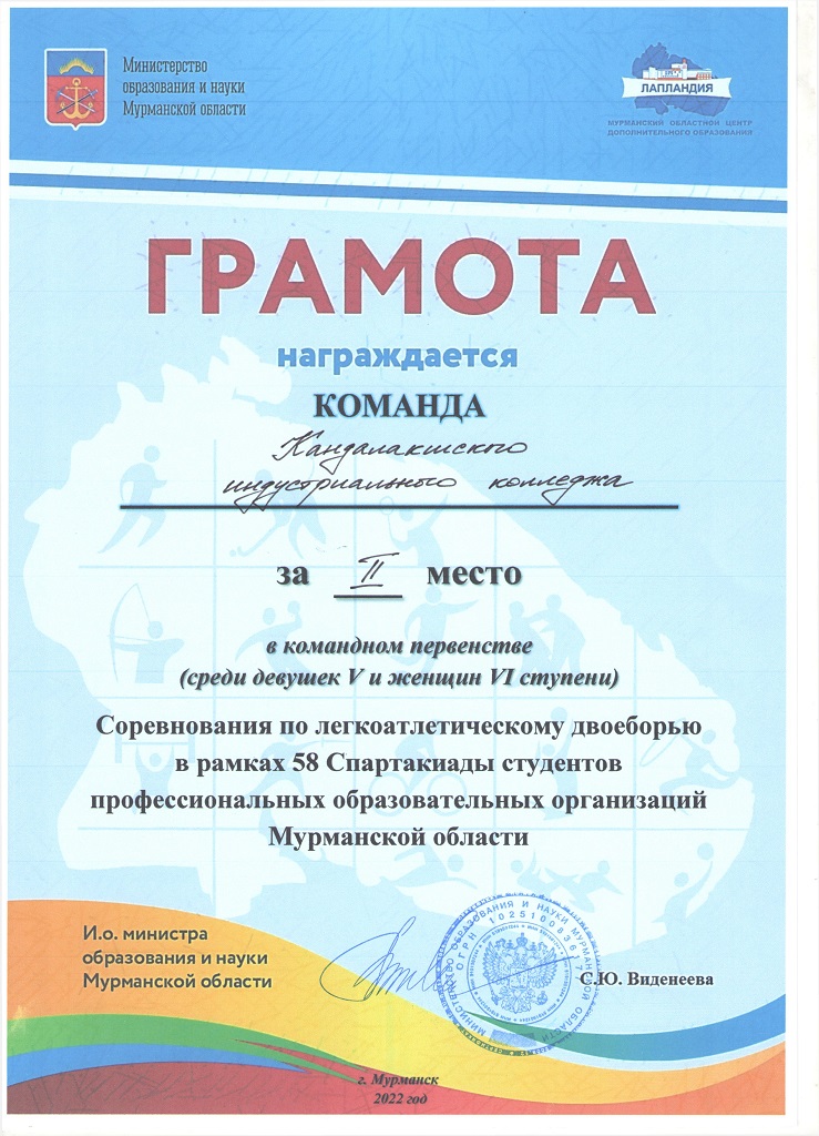Наши студенты – в числе победителей и призёров Арктических студенческих игр и 58-й Спартакиады студентов ПОО Мурманской области по многоборью ВФСК ГТО и легкоатлетическому двоеборью вторая группа.