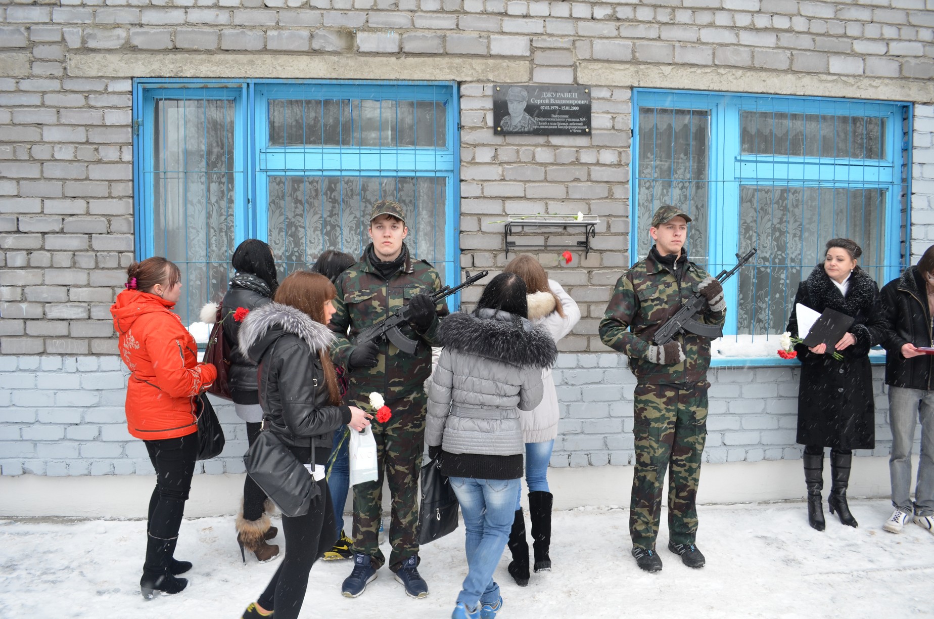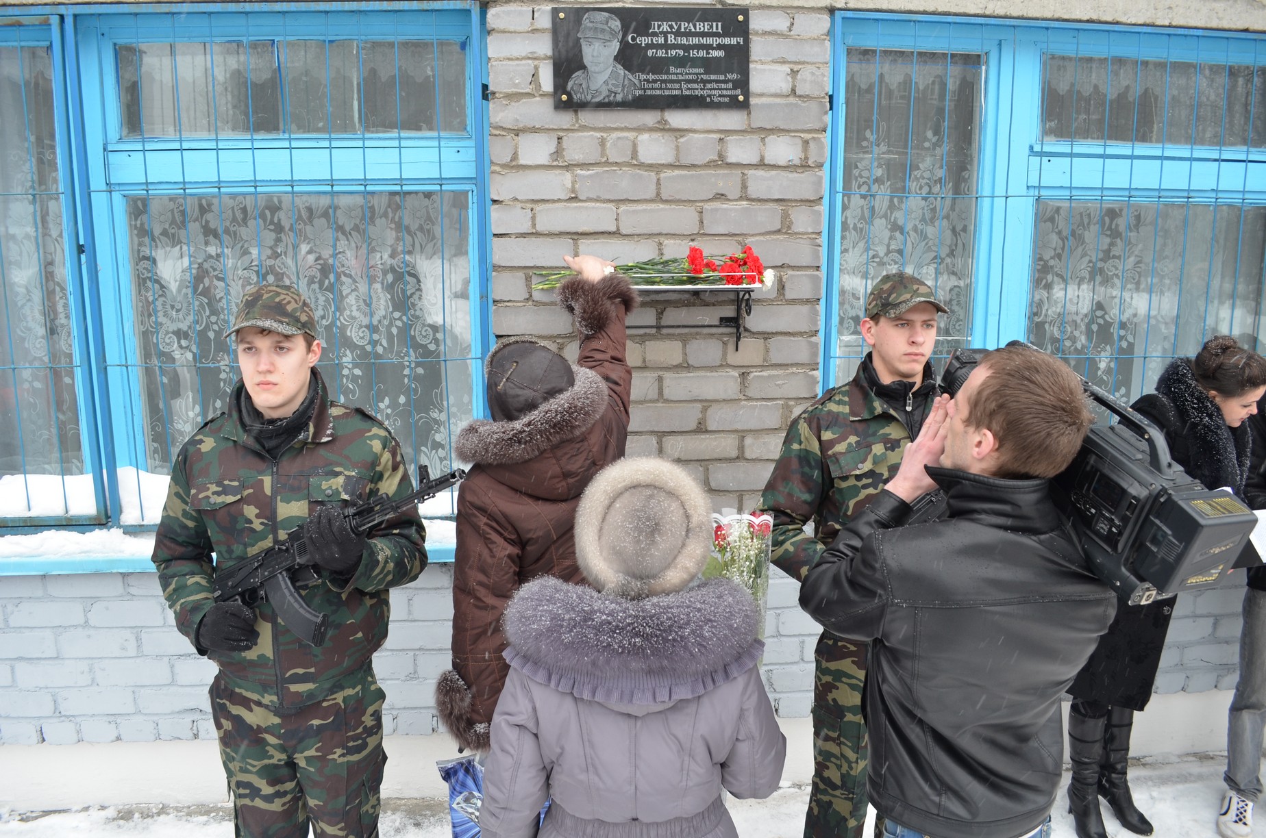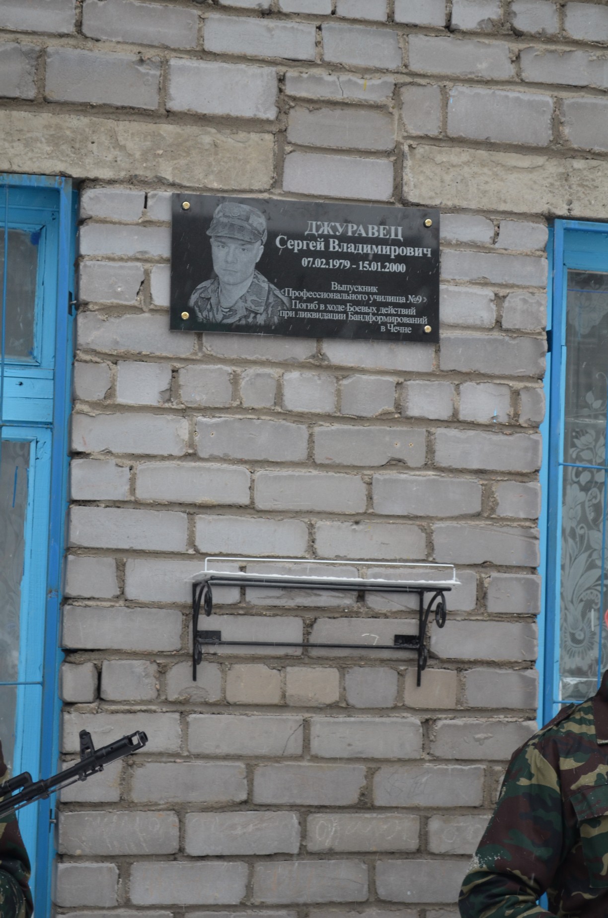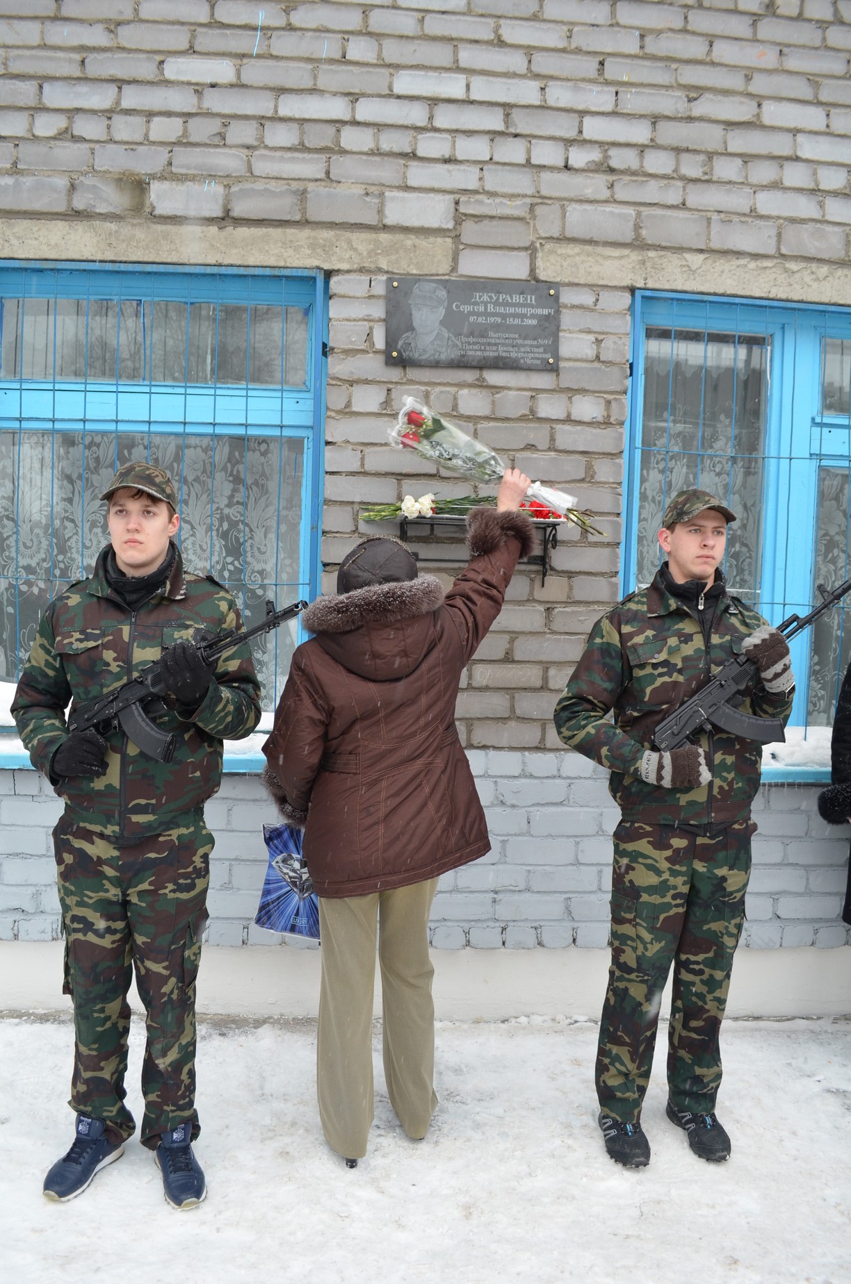 Что остается на земле после ухода человека, остается память о нем. Живая память… Живая, потому что память о погибших свято хранят их товарищи по оружию, их семьи и близкие, их земляки. И память эта будет жива, пока мы об этом помним, пока мы об этом говорим и поем. А мы помним. И сегодня в канун замечательного праздника День защитника Отечества мы открываем мемориальную доску выпускнику Профессионального училища №9, ныне это наш индустриальный колледж Джуравцу Сергею Владимировичу.