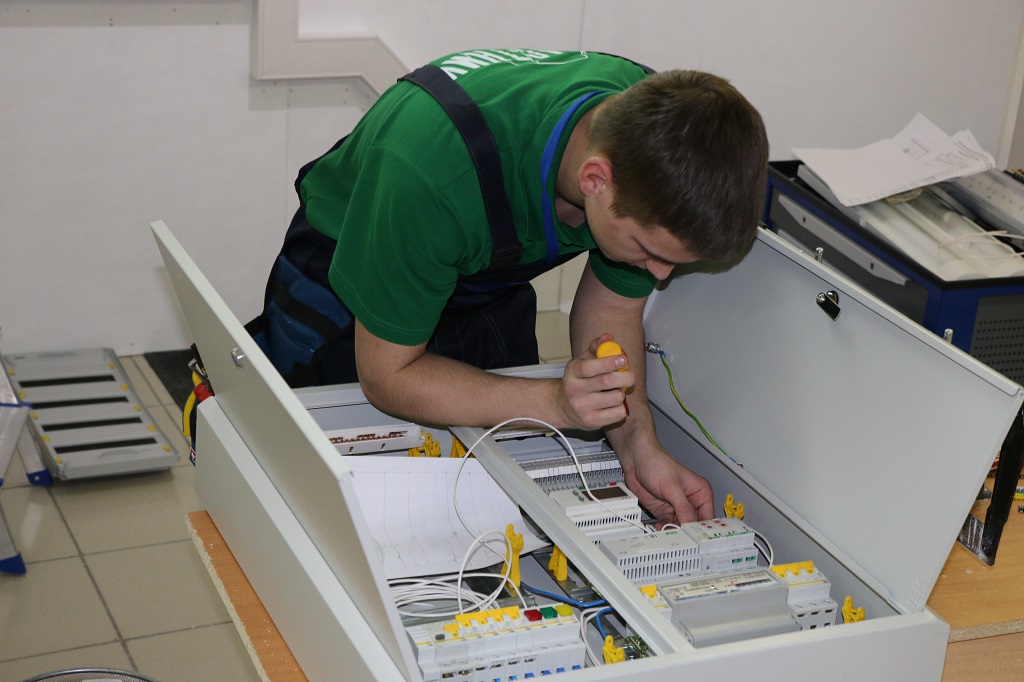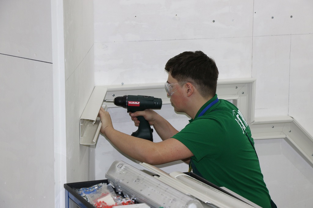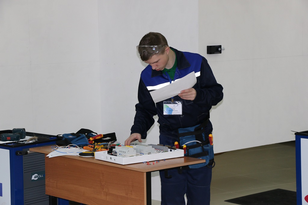 Участники пройдя инструктажи по мерам безопасности, получив конкурсные задания приступили к выполнению первого модуля «Монтаж в промышленной и гражданской отраслях». Общее время отведённое на выполнение модуля 17 часов.