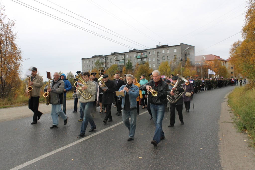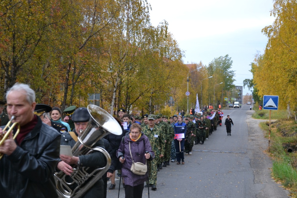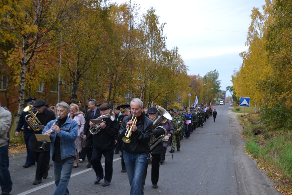 Под звуки духового оркестра участники игры, ветераны, гости прошли по городу к месту проведения игры.