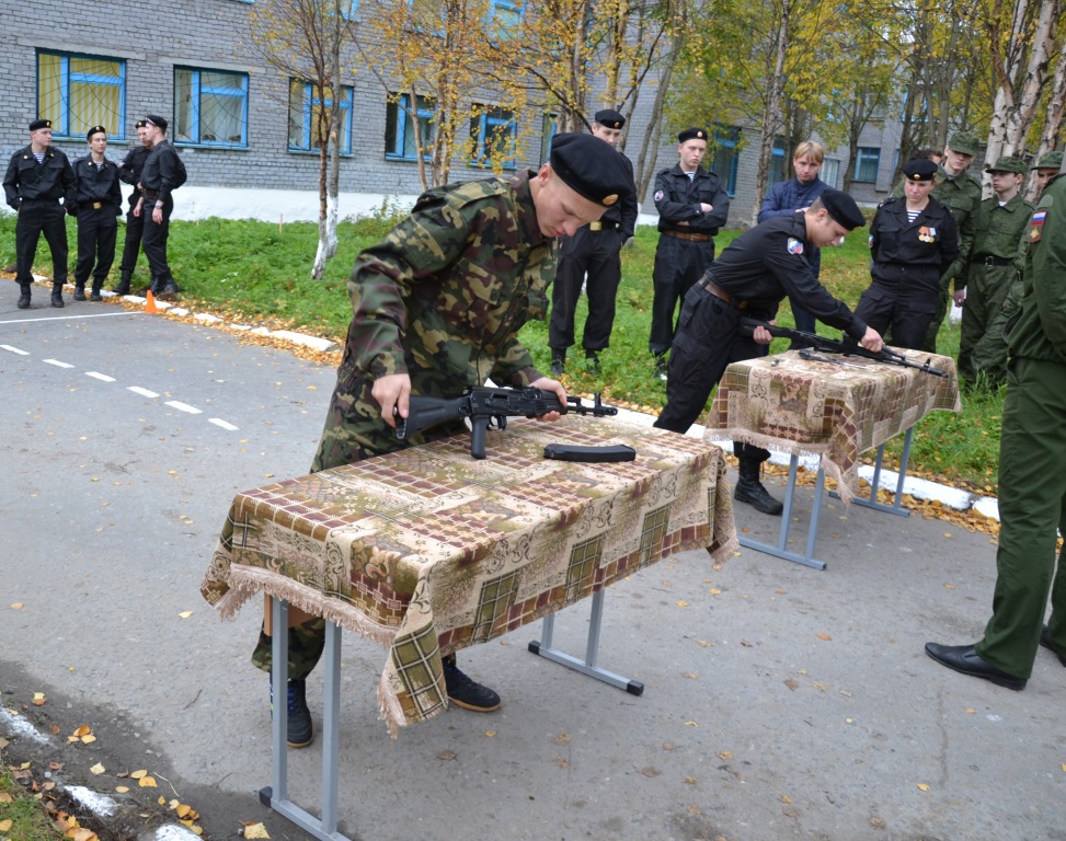 соревновались в разборке-сборке автомата Калашникова, преодолевали полосу препятствий, отвечали на вопросы викторины «История Российской армии»,