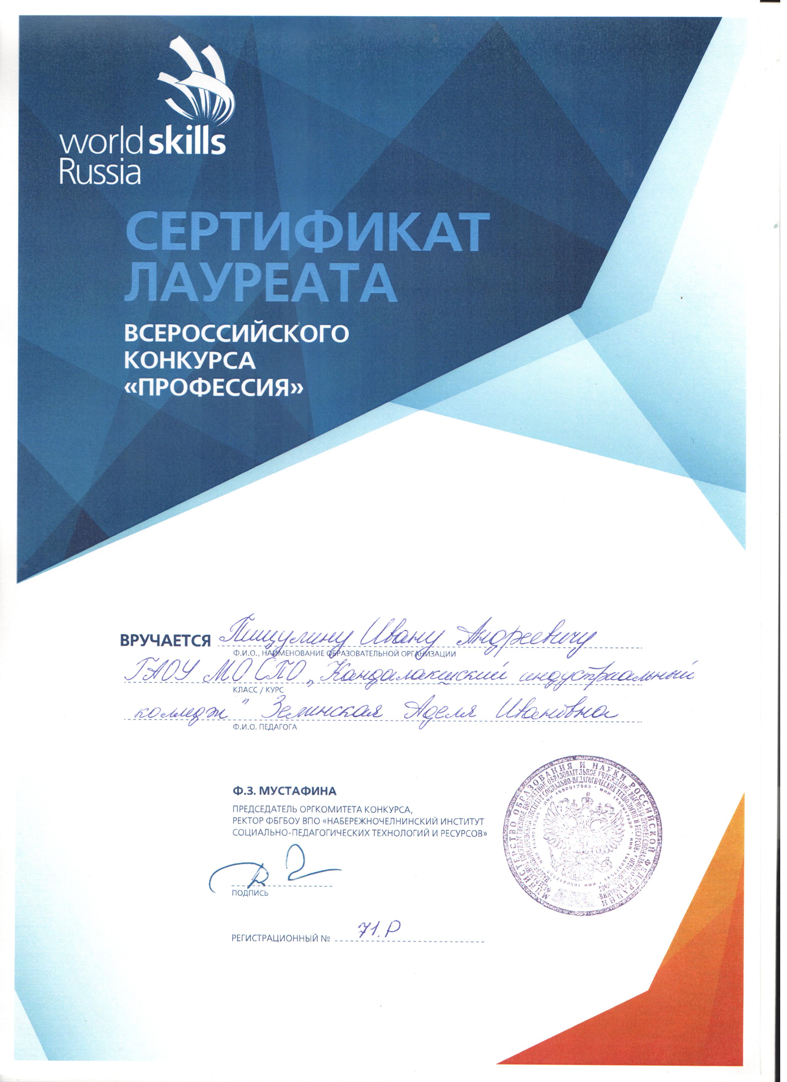 Пищулин Иван стал победителем в номинации "Профессия на грани фантастики". Руководитель Зелинская А.И.