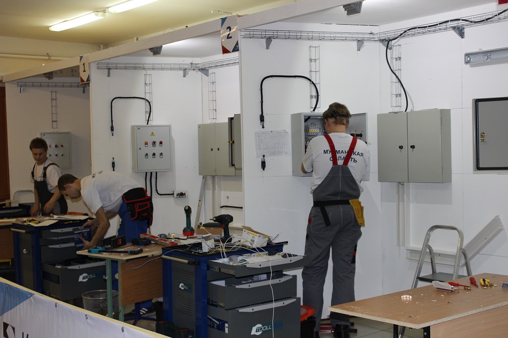 Восемь конкурсантов по компетенции «Электромонтажные работы» из 7 колледжей Мурманской области приближаются к завершению выполнения задания второго Модуля, кто-то уже успел произвести пробные пуски двигателя, найти неисправности. Времени осталось уже не много…