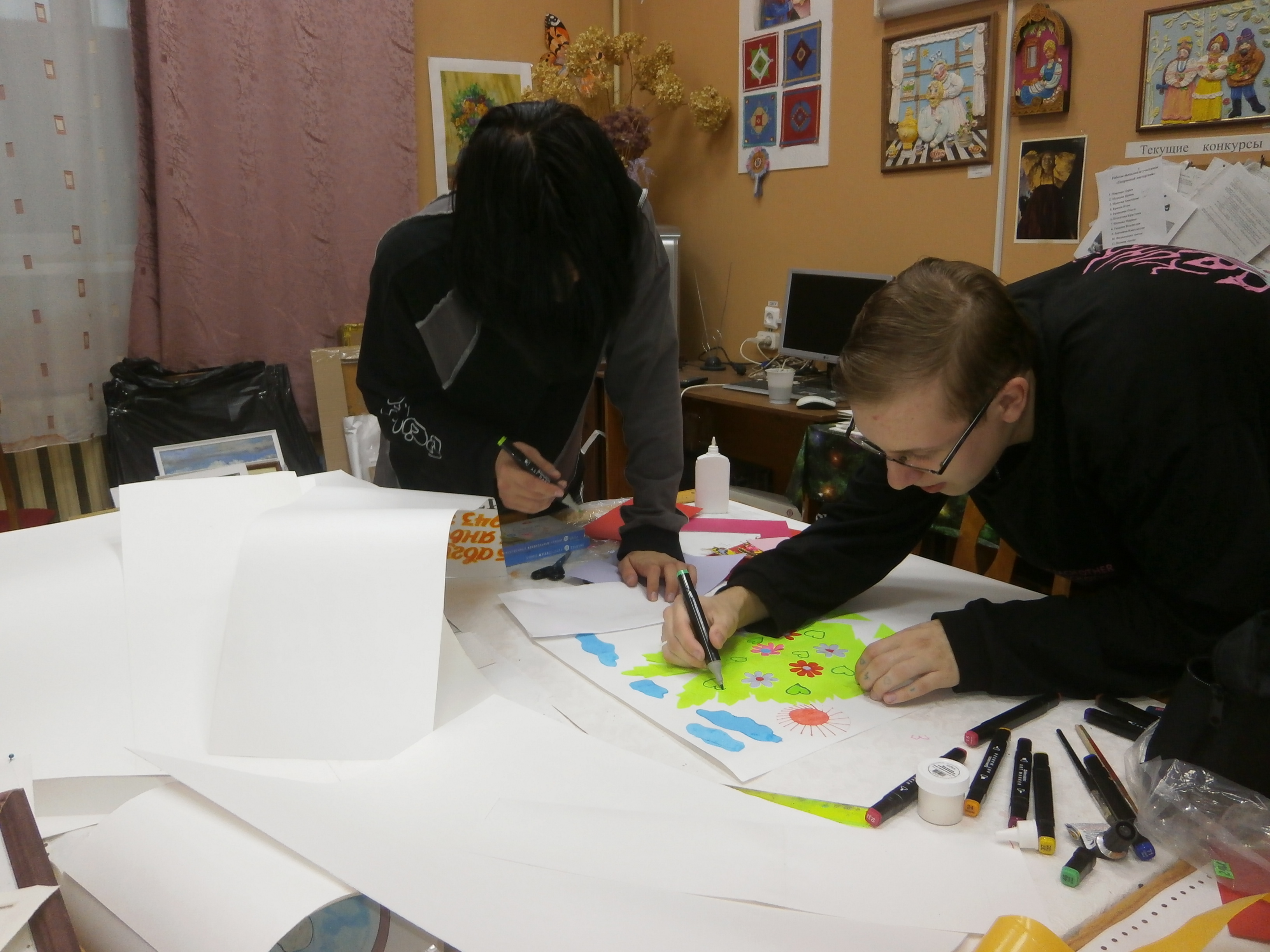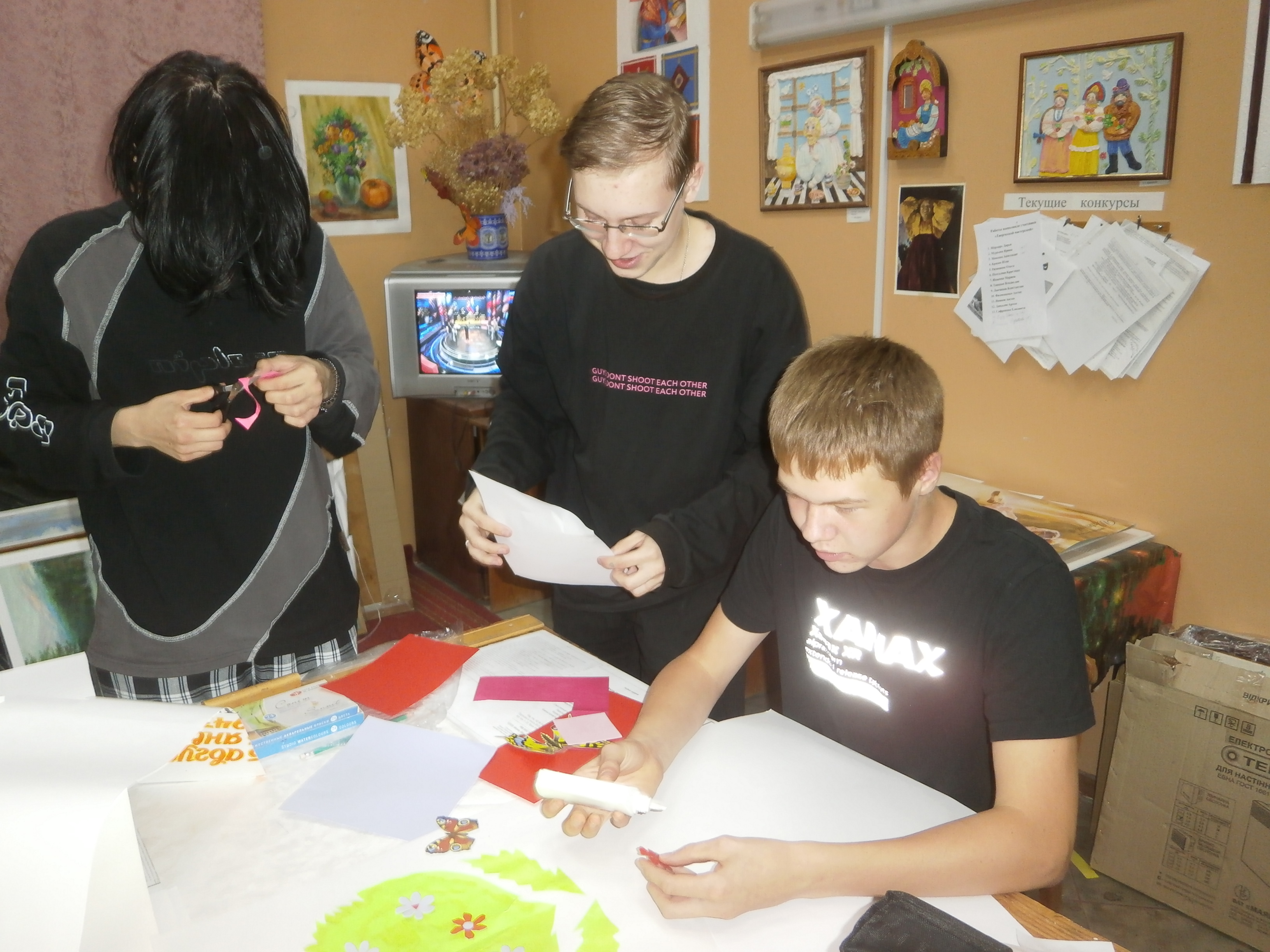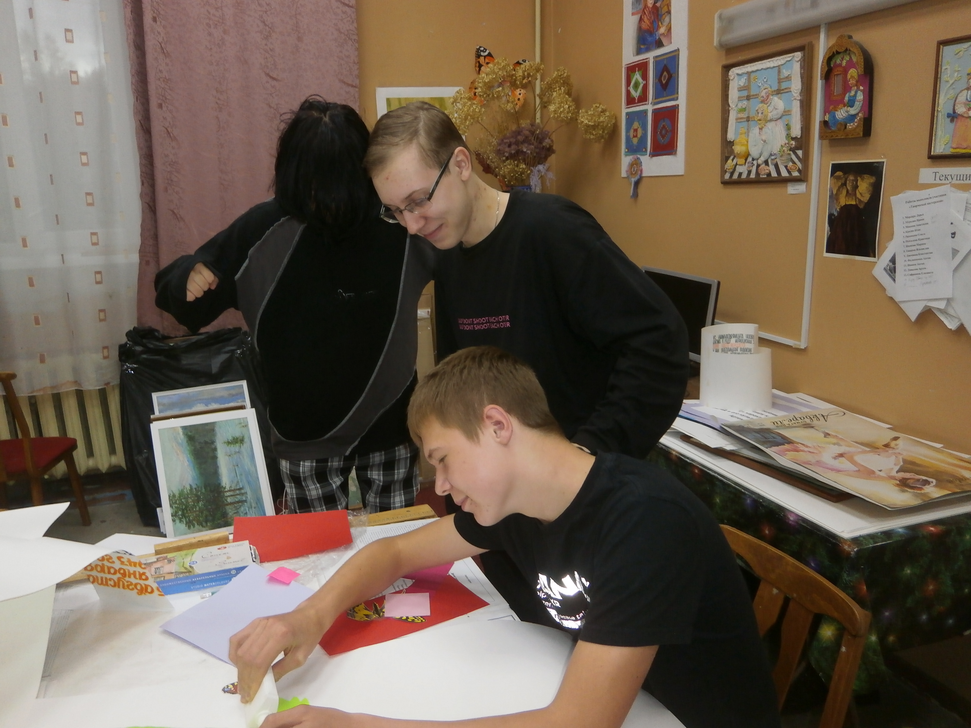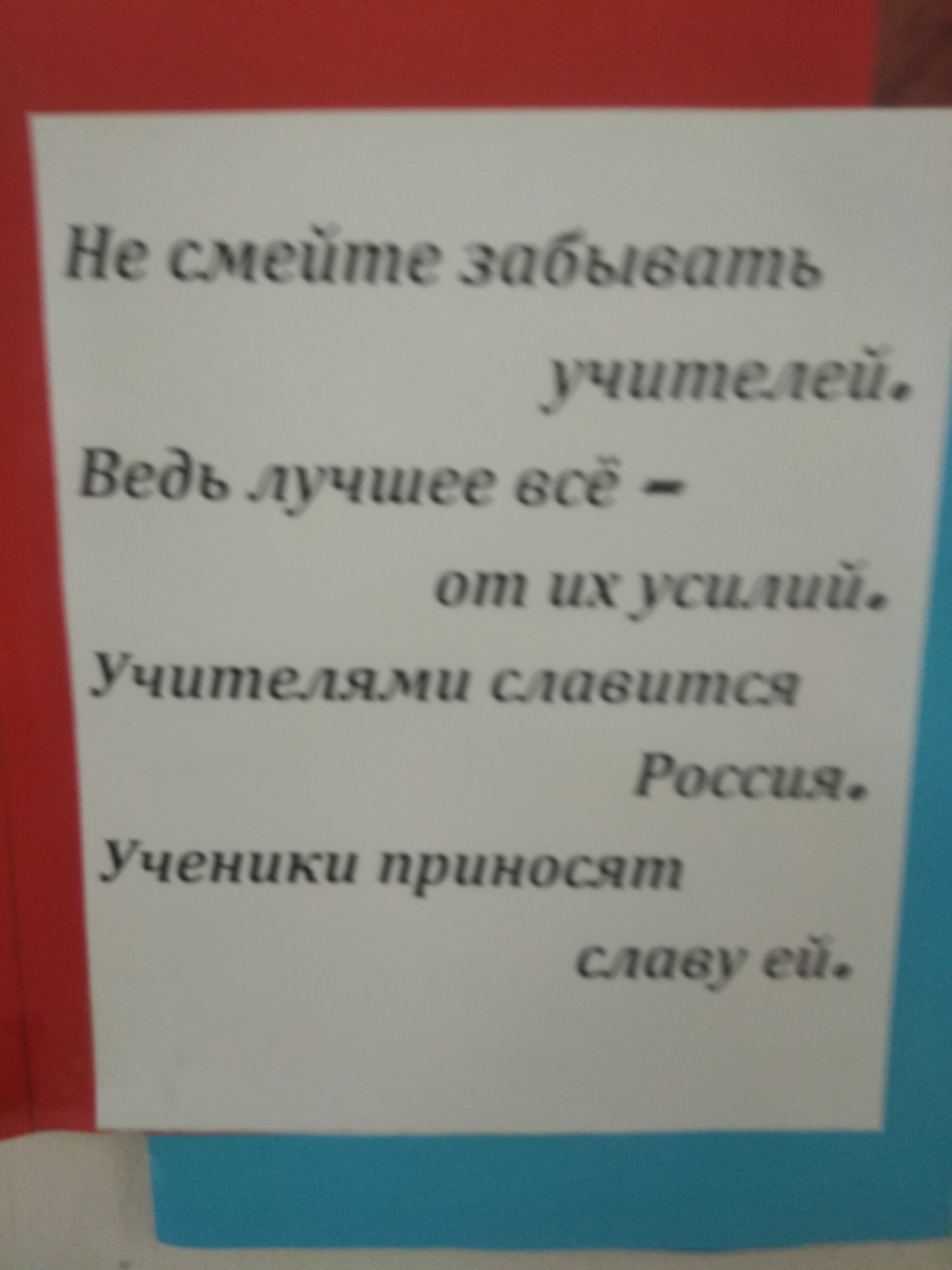 Творческая группа обучающихся – это Белов Иван, Ленинградская Варвара, Шелудько Арсений, Ермолин Максим, Севостьянов Алексей, Пушкарева Юлия, Морозова Татьяна, Николаева Милана, Макеева Анастасия - от имени всех учащихся колледжа поздравили педагогов с профессиональным праздником - Днём учителя. Ребята выполнили стенд по темам: «Страницы истории», «Скажи учителю «спасибо», «Уважаемые, любимые учителя, мы вам благодарны». Педагог дополнительного образования Зелинская А. И. подготовила к празднику небольшой вернисаж своих творческих работ и фотостенд «Цветы для вас». Библиотекарь Забудько О. А. помогла составить текст поздравлений. В рекреациях колледжа стало празднично, ярко, красиво и тепло от добрых слов благодарности и поздравлений.