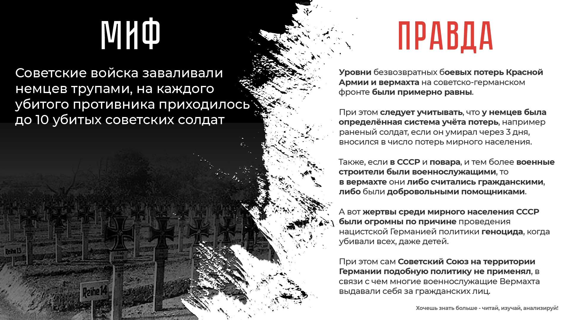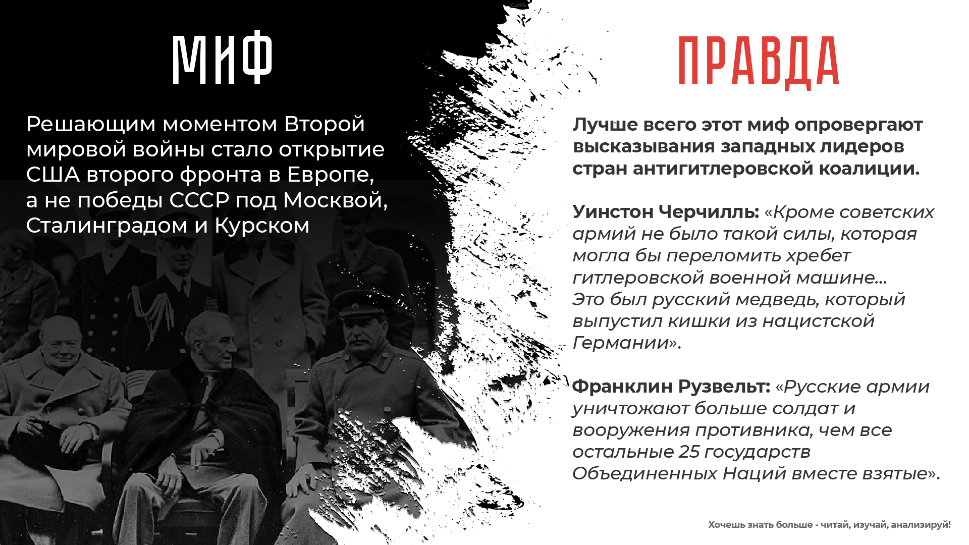 Мифы преследуют главную цель - лишить молодые поколения России возвышающей правды о подвиге их великих предков, разгромивших самую сильную армию мира, которую, когда – либо, создавало человечество!