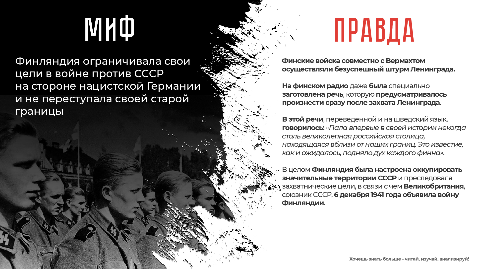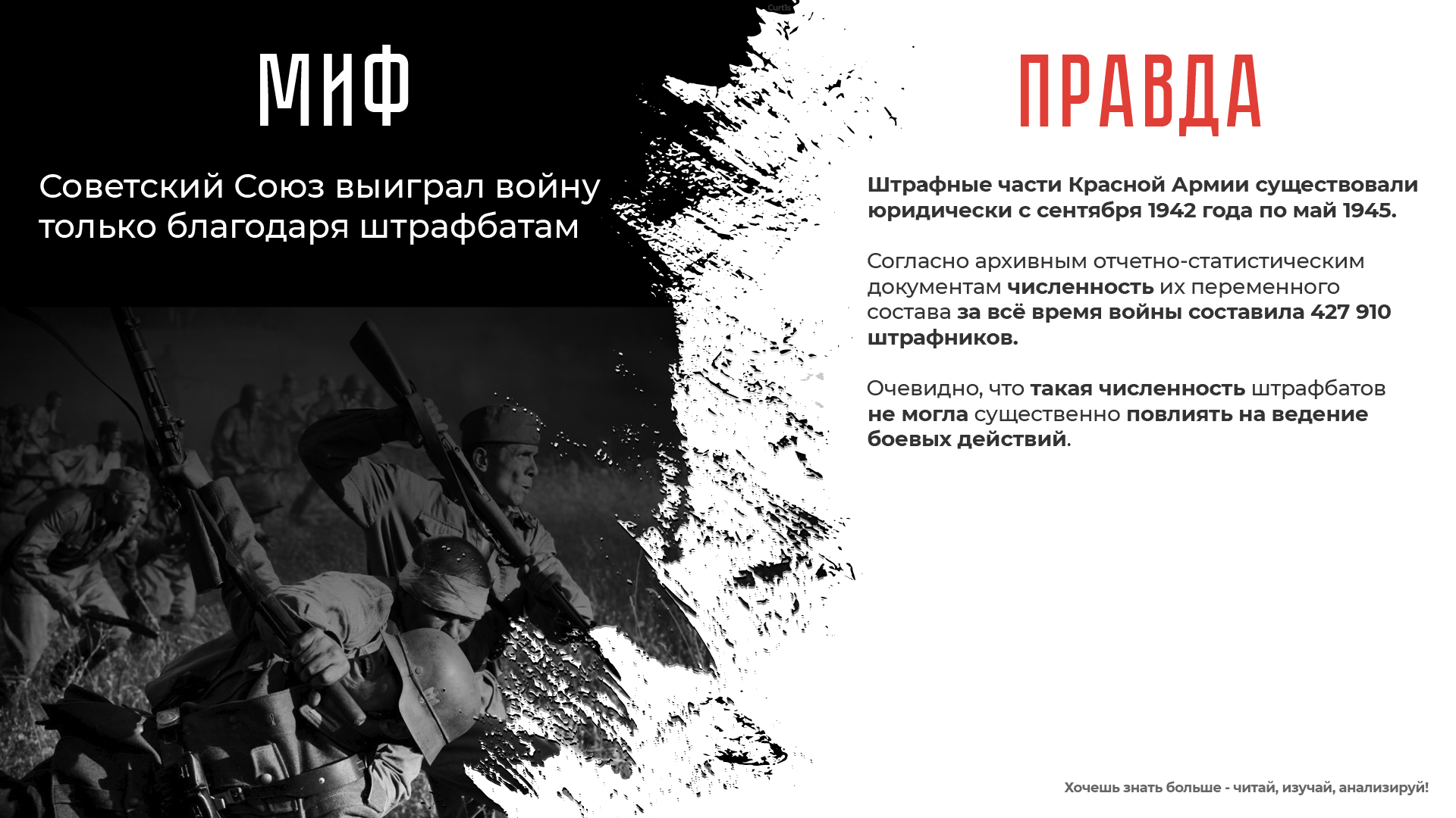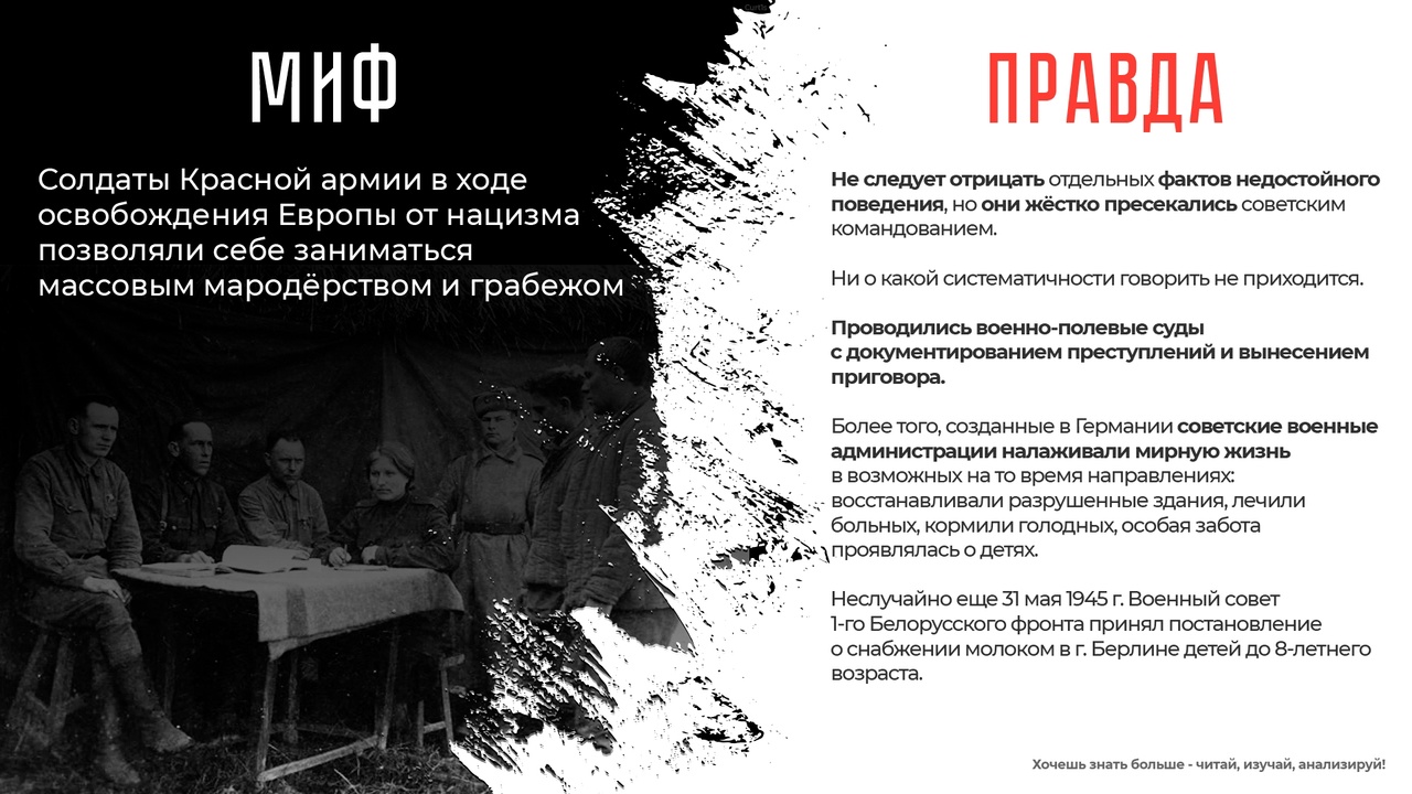 Мифы преследуют главную цель - лишить молодые поколения России возвышающей правды о подвиге их великих предков, разгромивших самую сильную армию мира, которую, когда – либо, создавало человечество!