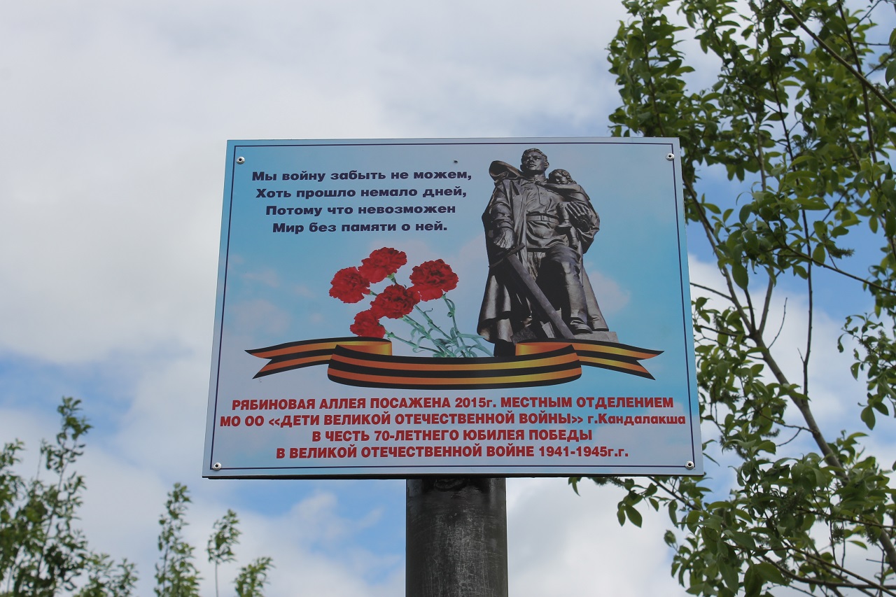 В рамках празднования 70-летия Победы в Великой Отечественной войне в Кандалакше члены местного отделения Мурманской областной общественной организации «Дети Великой Отечественной войны» организовали высадку рябиновых деревьев вблизи гостиницы «Сполохи». Так в нашем городе появилась Рябиновая аллея. В течение двух лет студенты колледжа со своими наставниками и членами общественной организации «Дети войны» продолжали работы по благоустройству аллеи: сажали деревья, подсаживали новые взамен сломанных, поливали, удобряли, косили траву.