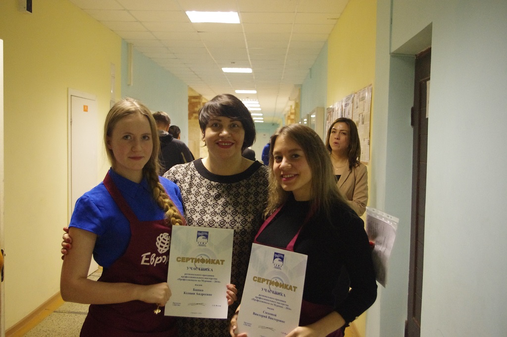 03 ноября 2016 г. на базе ГАПОУ МО «Мурманский строительный колледж им. Н.Е. Момота» состоялся региональный праздник профессионального мастерства «Профессионалы на Мурмане - 2016», в рамках которого студенты ГАПОУ МО «Кандалакшский индустриальный колледж» Башко Ксения и Соскова Виктория под руководством преподавателя Макаркиной О.В. приняли участие в двух конкурсах по профессии «Повар» и «Кондитер».