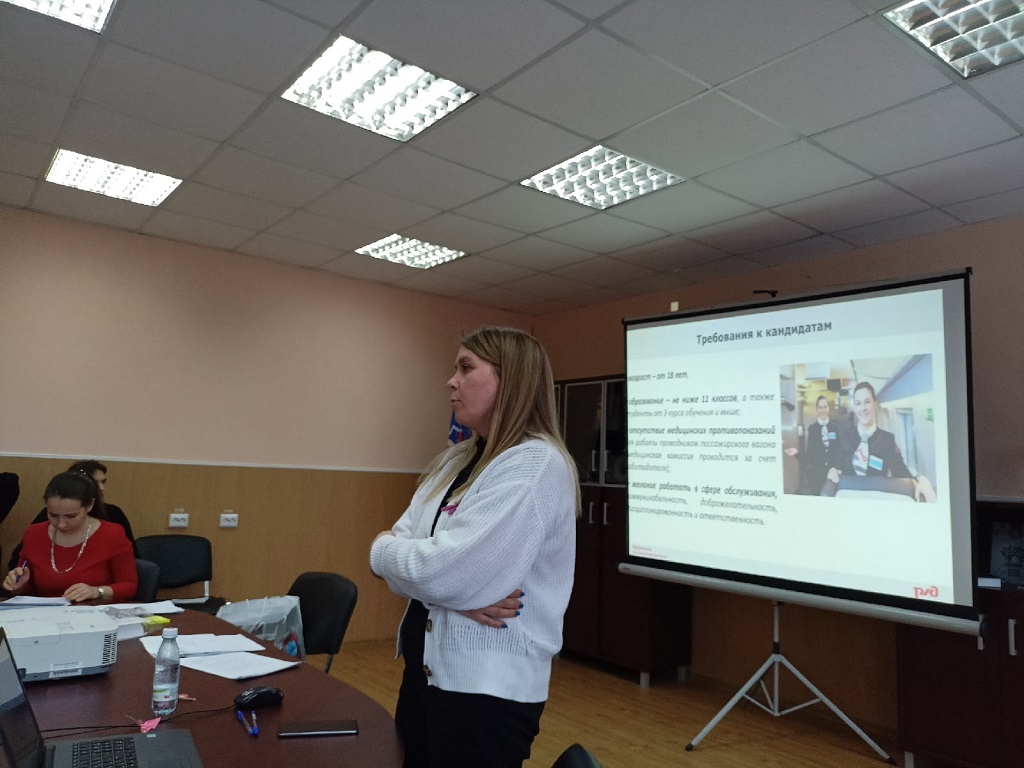10 марта 2022 года специалисты АО «Федеральная пассажирская компания» провели встречу с обучающимися нашего колледжа, на которой рассказали об обучении по специальности «Проводник пассажирского вагона» и дальнейшем трудоустройстве проводником пассажирского вагона.