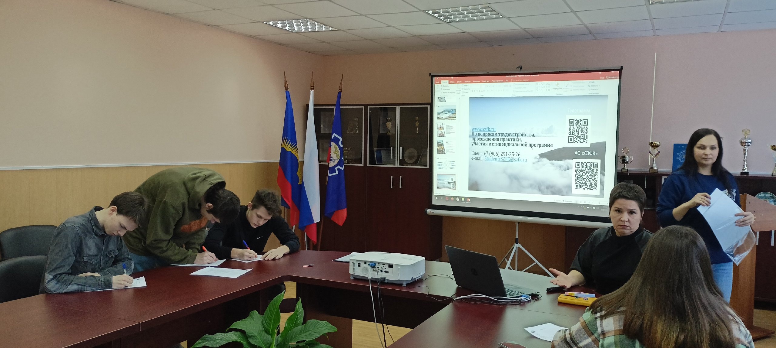 В рамках профориентационной работы, содействию трудовой занятости студентов и выпускников 07 февраля 2024 года на базе колледжа прошла встреча со специалистами компании АО «СЗФК» , которые рассказали об особенностях прохождения оплачиваемой практики, о перспективах трудоустройства, требованиях, предъявляемых при трудоустройстве, функциях и должностных обязанностях работников.