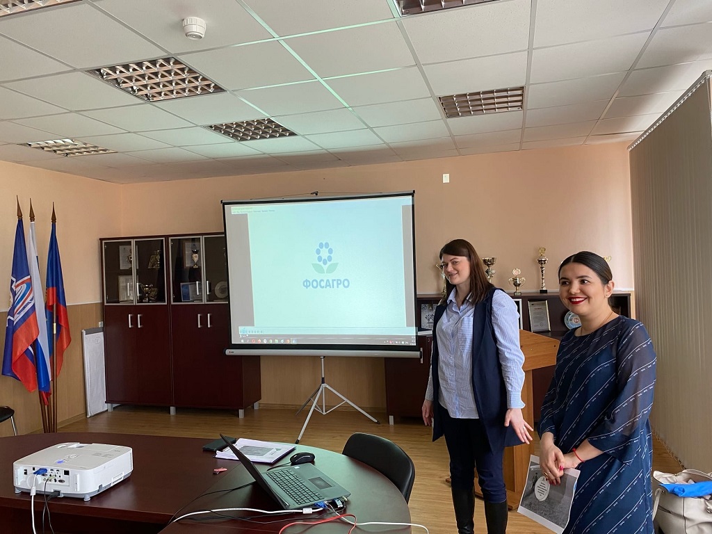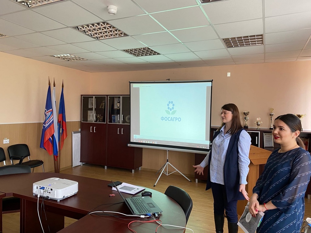 В рамках профориентационной работы, содействию трудовой занятости студентов и выпускников 17 мая 2022 года на базе колледжа прошла встреча со специалистами компании «ФосАгро» КФ АО «Апатит» -специалистом по подбору персонала Байзигитовой Лилияной Игоревной и ведущим специалистом компании, которые рассказали об особенностях прохождения оплачиваемой практики, о перспективах трудоустройства, требованиях, предъявляемых при трудоустройстве, функциях и должностных обязанностях работников.