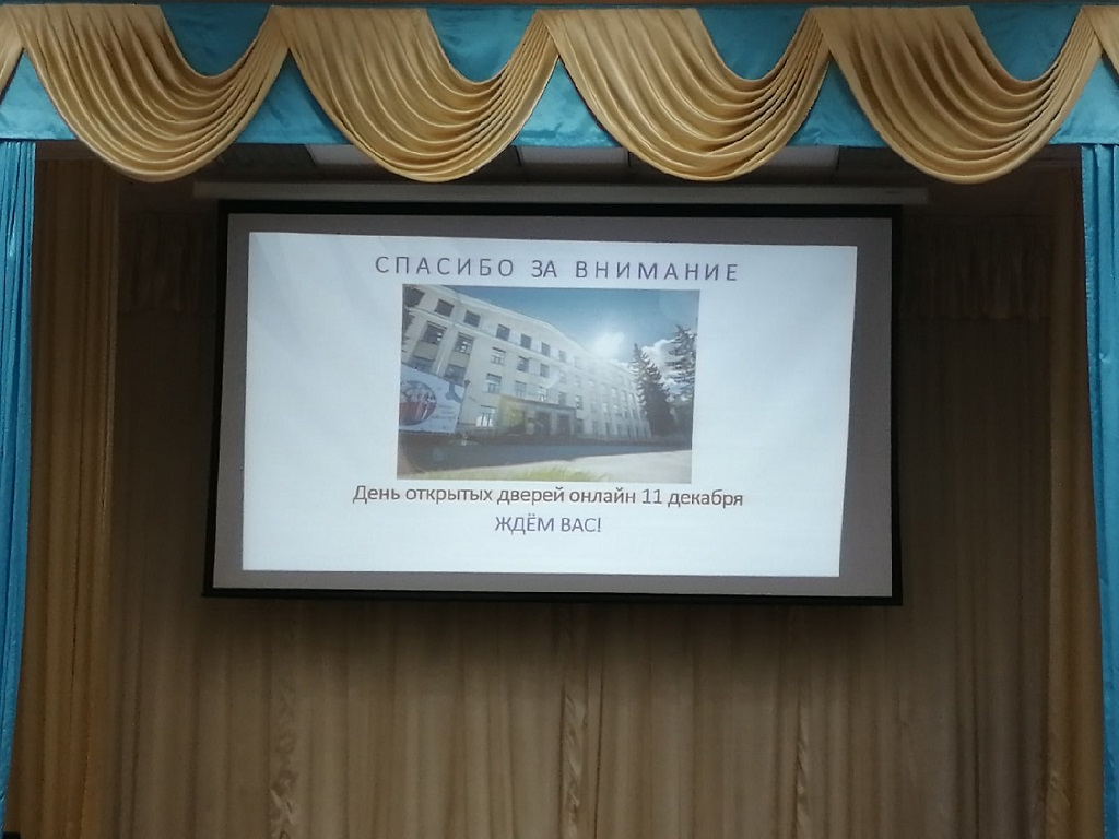 Юлия Владимировна акцентировала внимание ребят на значимости получения высшего образования в дальнейшей профессиональной жизни молодых специалистов, о важности своевременного получения этого высшего образования для успешного продвижения по карьерной лестнице, а так же предложили студентам свои рекламные буклеты, пожелали ребятам успешно сдать государственную итоговую аттестацию.