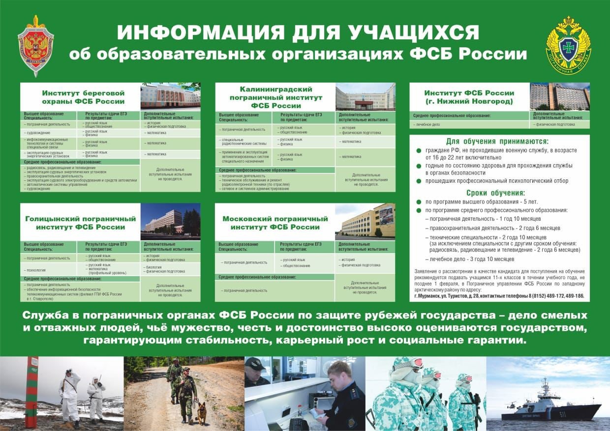 22 февраля 2023 года сотрудники Пограничного управления ФСБ России по западному Арктическому району провели профориентационную встречу с выпускниками колледжа, на которой рассказали о перспективах и требованиях, предъявляемых при трудоустройстве, функциях и должностных обязанностях работников.